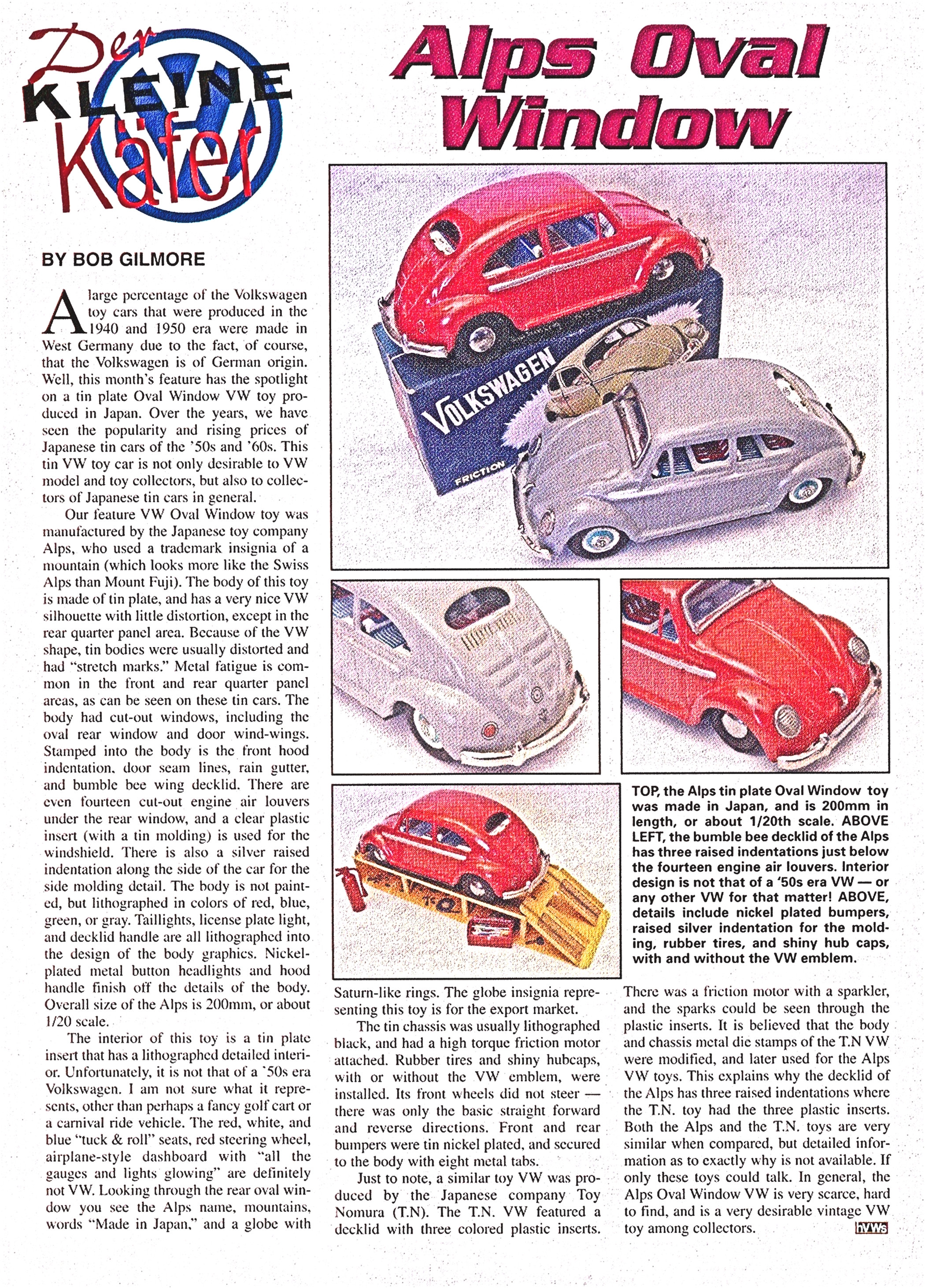 The body of this VW car is made of tin plate and has a very nice VW silhouette with little distortion except in the rear quarter panel area. Because of the basic VW shape itself, the tin bodies of the toy cars are usually distorted and have stretch marks.