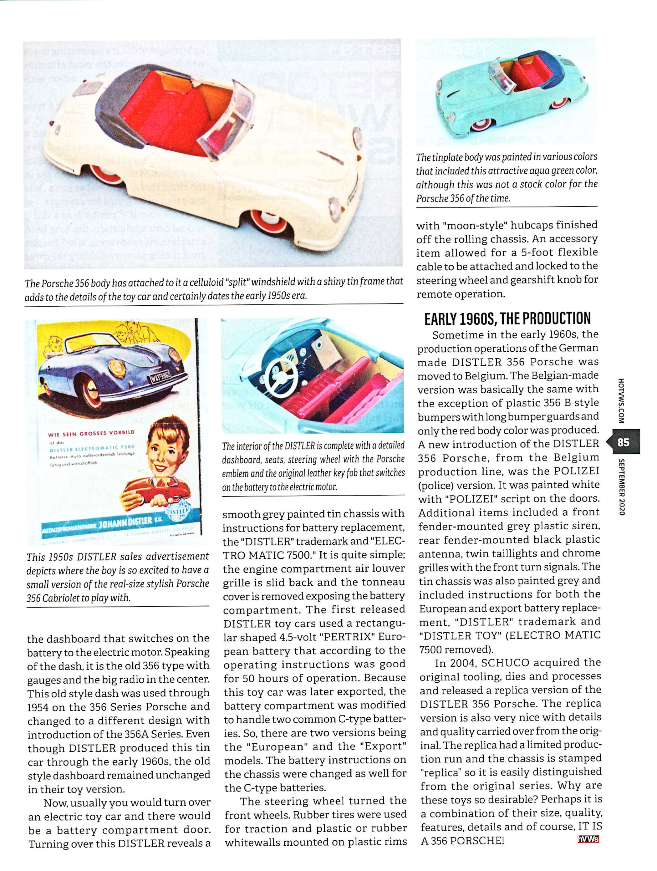 It did not take long for the toy and model manufactures to take notice of the Porsche 356 popularity. They tooled up to produce their version of this sports car-in miniature. One of those toy manufactures was JOHANN DISTLER K. G. located in Germany's main toy industry of Nürnberg. DISTLER had been producing tin toys for years.