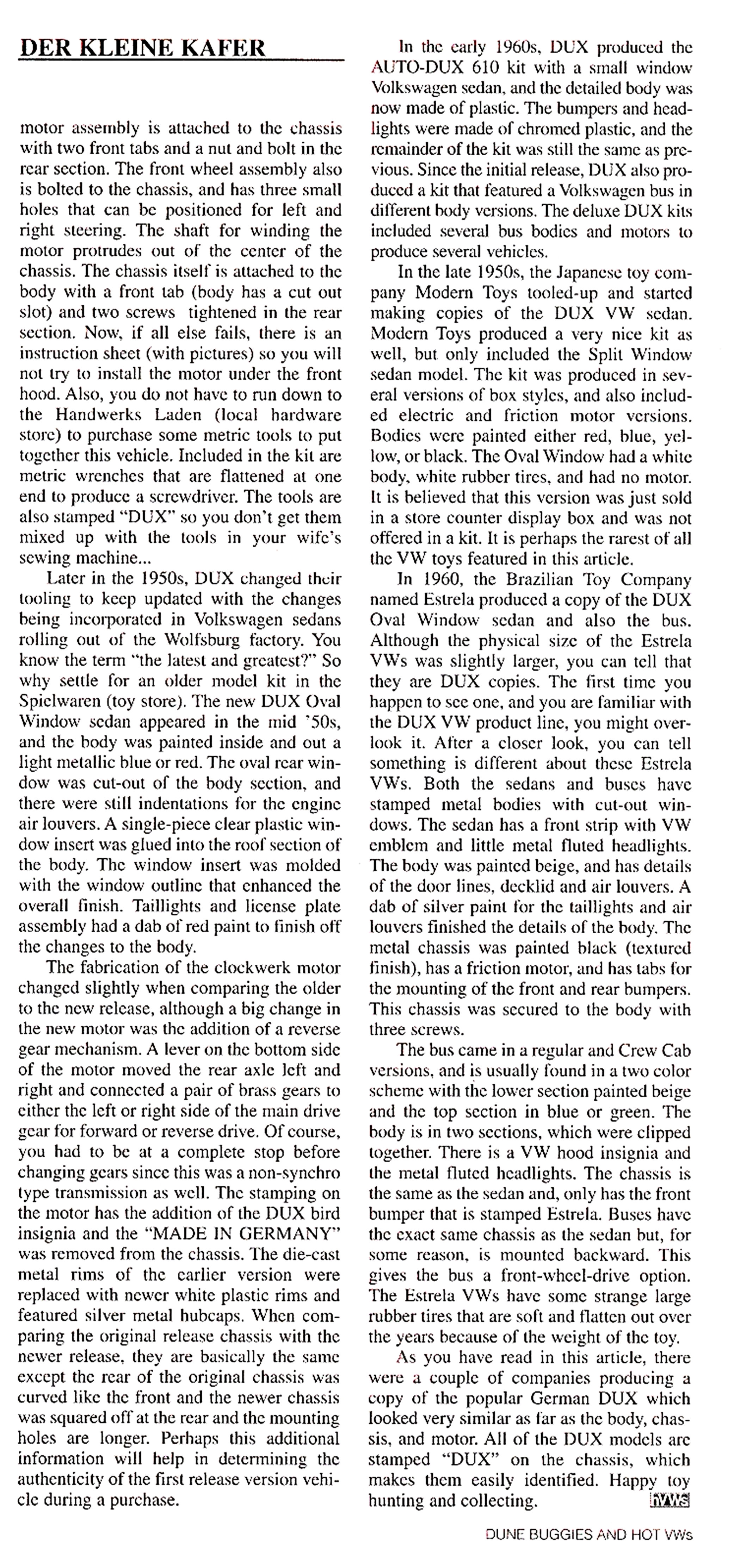 Since the introductions of these AUTO-DUX kits were in the early 1950’s, the VW Sedan first produced was of the split window model type. The body is steel plate and stamped to represent the VW silhouette and has cut out windows.
