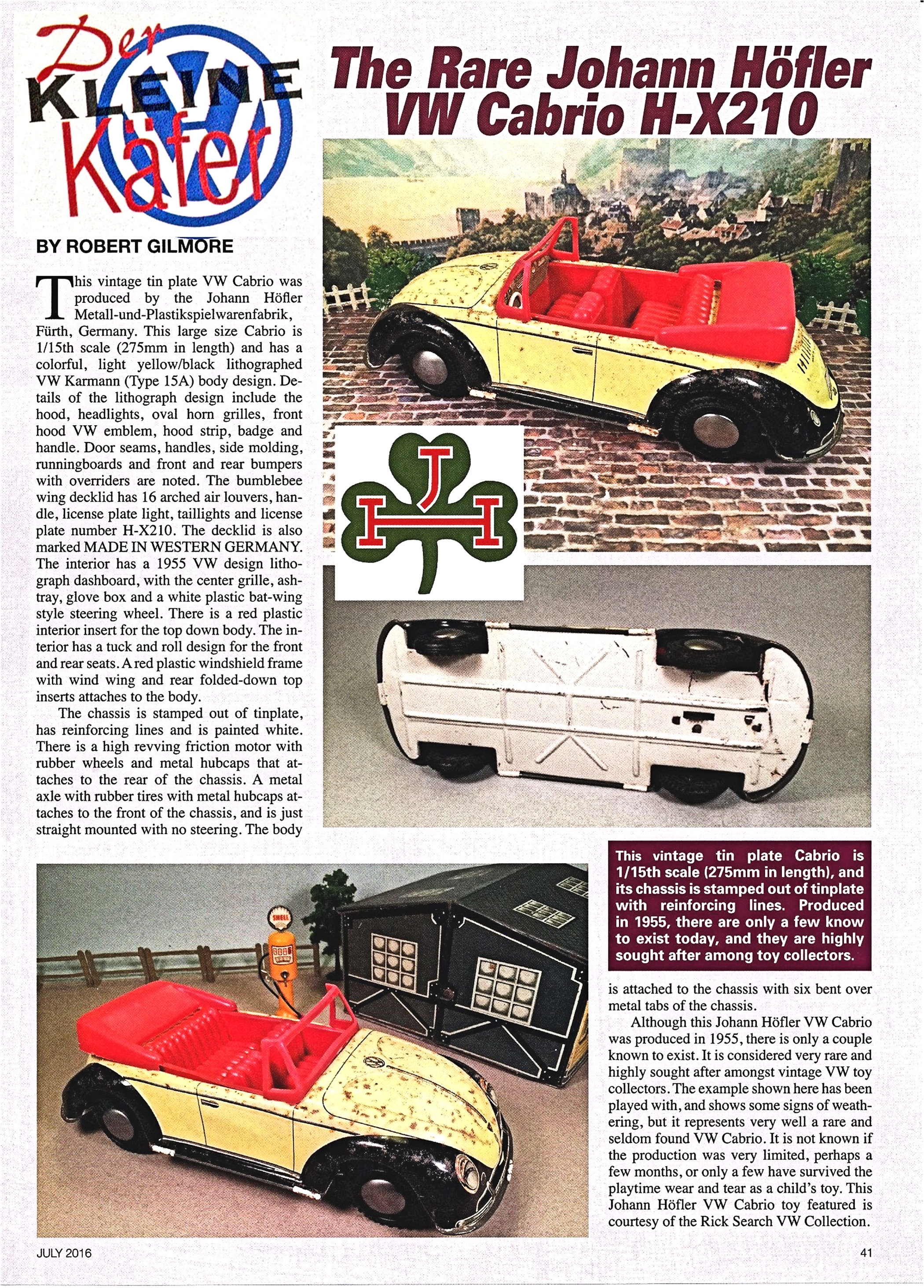 a colorful, cream/black lithographed VW Type 15A body design. Details of the design include the headlights, taillights, oval horn grilles, front hood VW emblem, hood strip, badge and handle. Door seams, handles, side molding along with front and rear bumpers.
