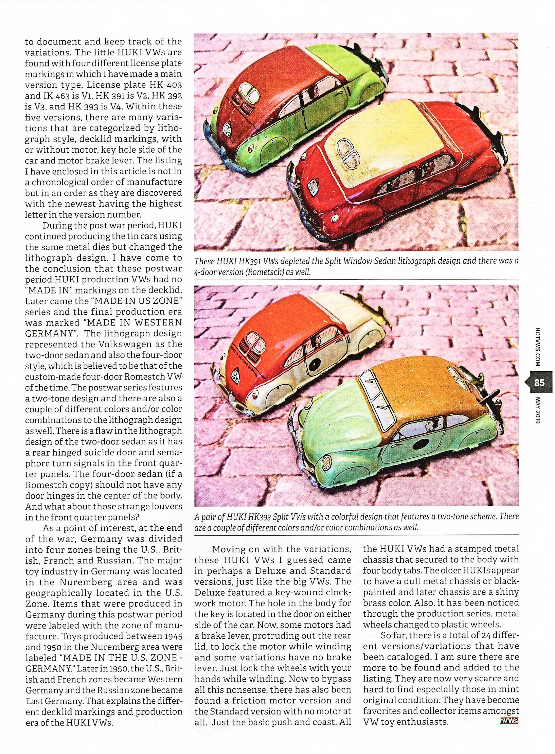 I have come to the conclusion that these post war period HUKI production VWs had no “MADE IN” markings on the rear deck lid. Later came the “MADE IN US ZONE” series and the final production era was marked “MADE IN WESTERN GERMANY”.