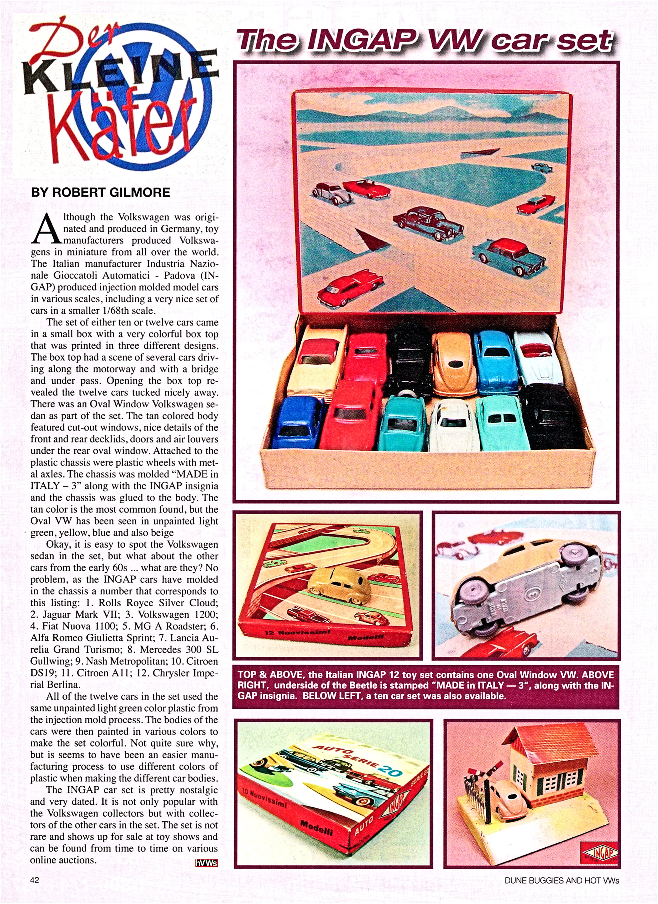 Opening the box top revealed the twelve cars tucked nicely away in the small box. There was an Oval Window Volkswagen Sedan as part of the set. The tan colored body featured cut out windows, nice details of the front and rear deck lids, doors and air louvers under the rear oval window.