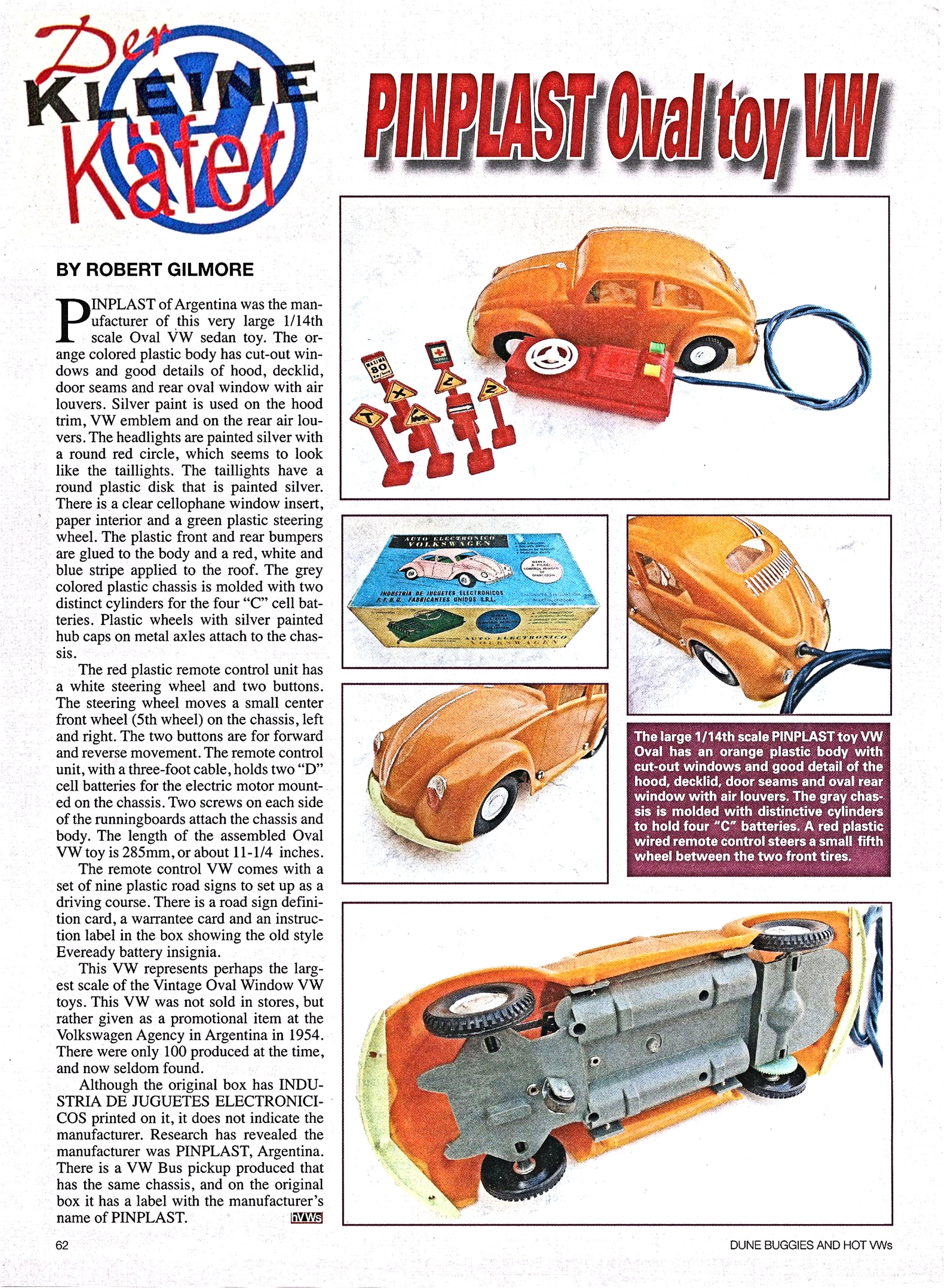 PINPLAST of ARGENTINA produced this Oval VW that is a very large plastic body with cut out windows and good details of front and rear hood, door seams and rear oval window with air louvers. Clear plastic window insert, paper interior and steering wheel.