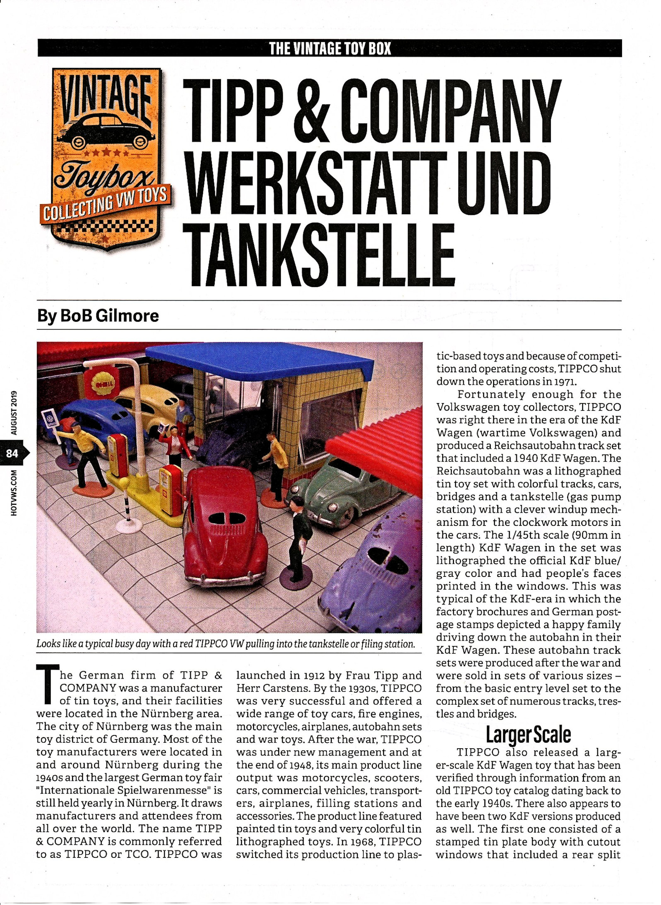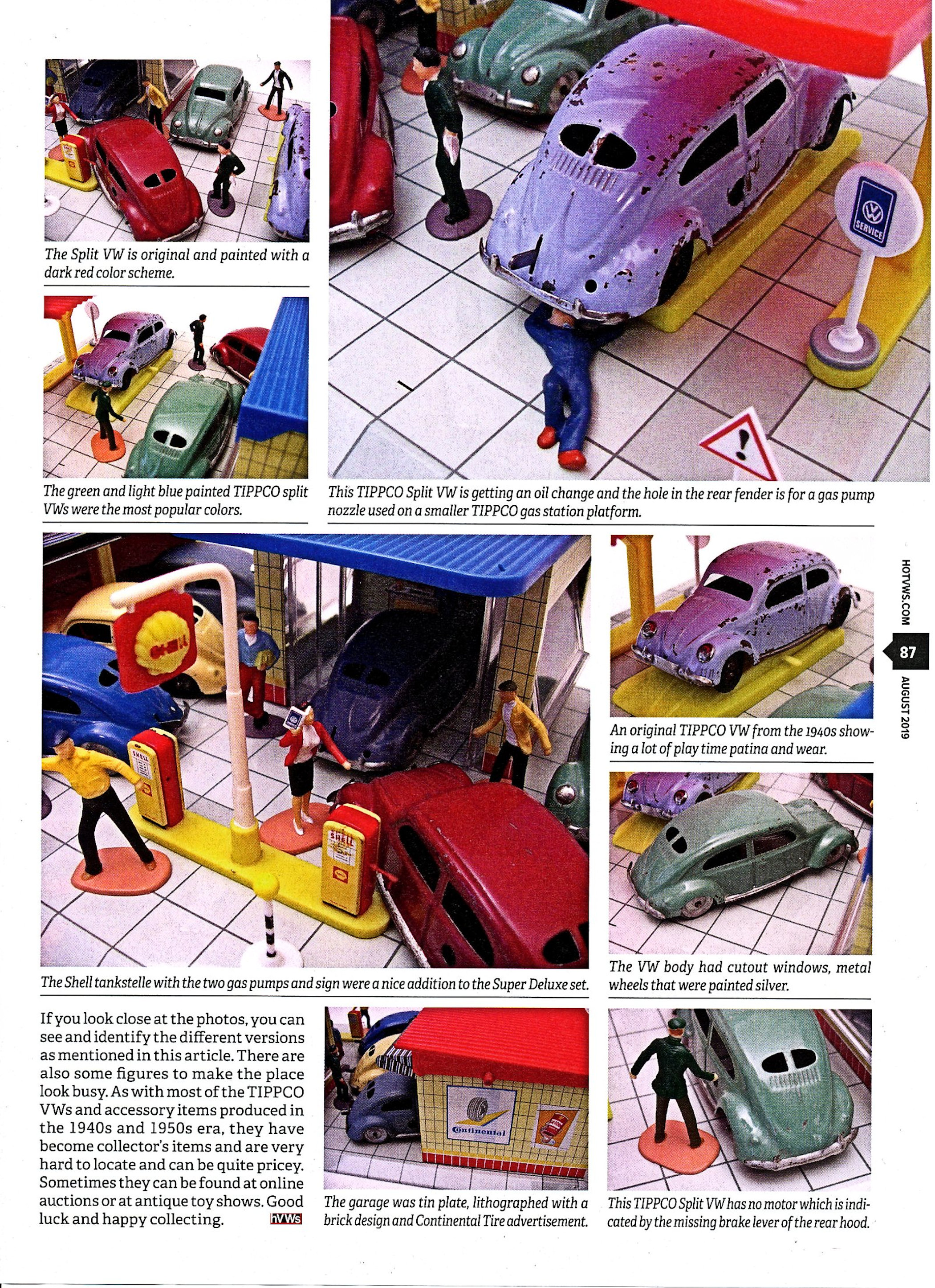 The platform sizes ranged from the basic garage and tankstelle to the “Super Deluxe” set consisting of a garage, tankstelle, office and lift platform with shade cover. The Tipp&Co “Super Deluxe” set is featured in this issue. This werkstatt & garage set is in remarkably mint condition considering it was made in the early 1950s and time has definitely stood still for it.