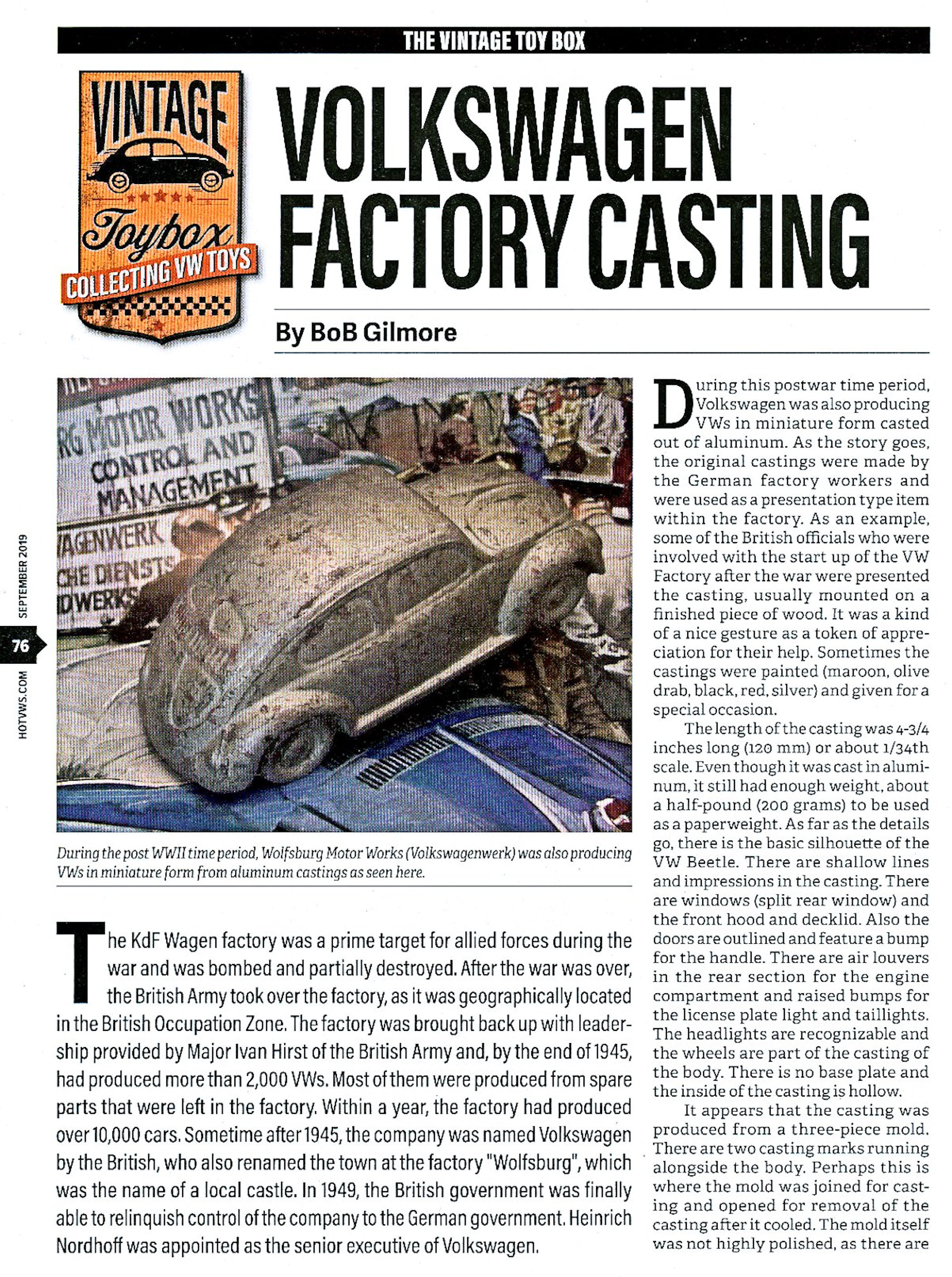 During this post WWII time period, Volkswagenwerk was also producing VWs in miniature that were mold casted out of aluminum. As the story goes, the original castings were made by the German factory workers and were used as a special presentation type item within the factory itself.