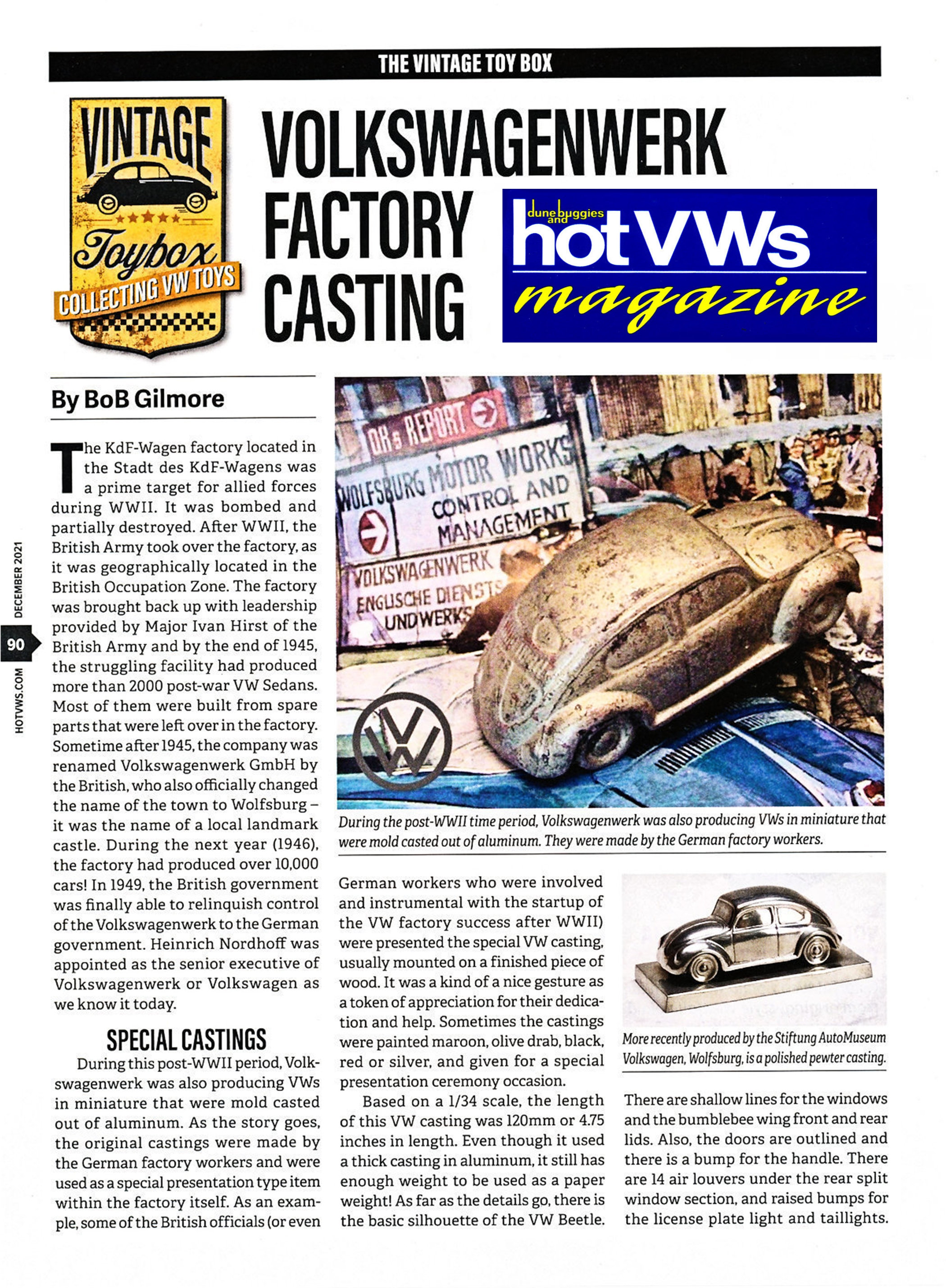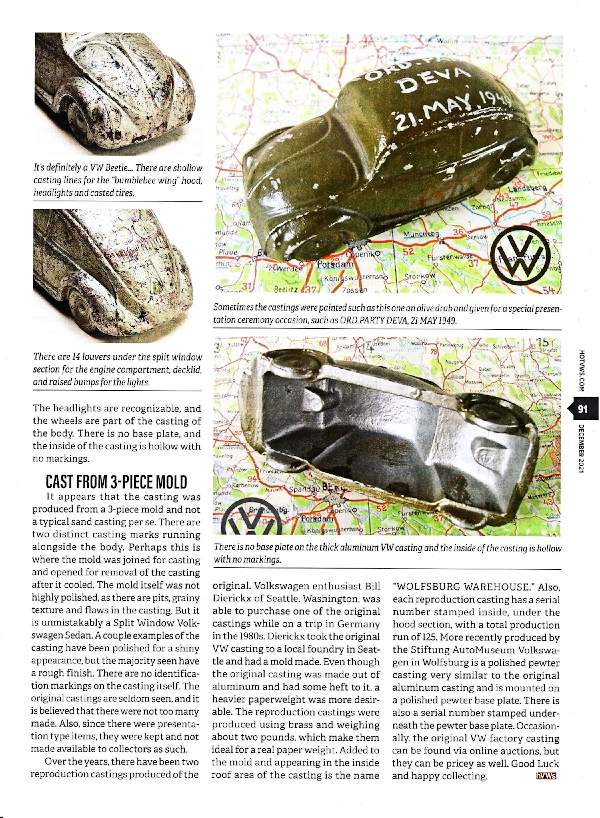 During this post WWII time period, Volkswagenwerk was also producing VWs in miniature that were mold casted out of aluminum. As the story goes, the original castings were made by the German factory workers and were used as a special presentation type item within the factory itself.
