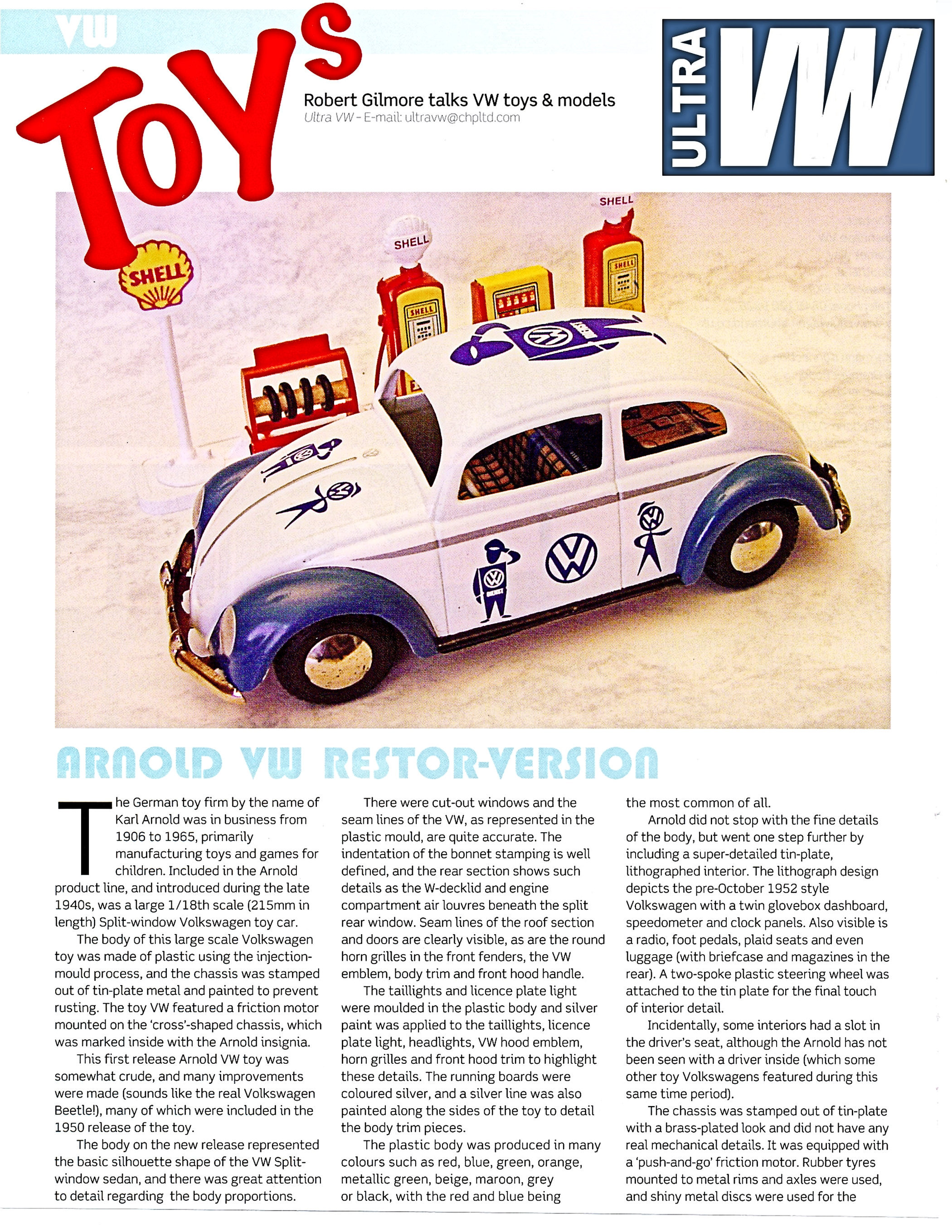 OK, here is a Vintage ARNOLD Split VW Toy that is broken and has become unwanted as a collector’s item. Here is a set of photos showing the process thru my Restor-Version Shop to bring the life back into this broken VW.