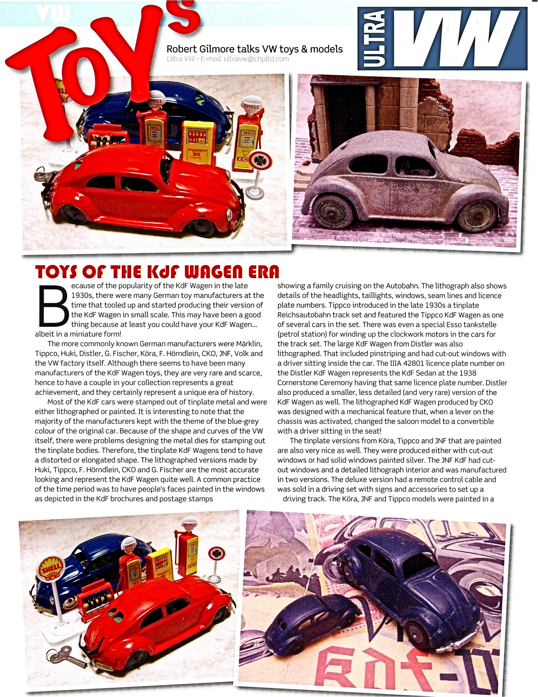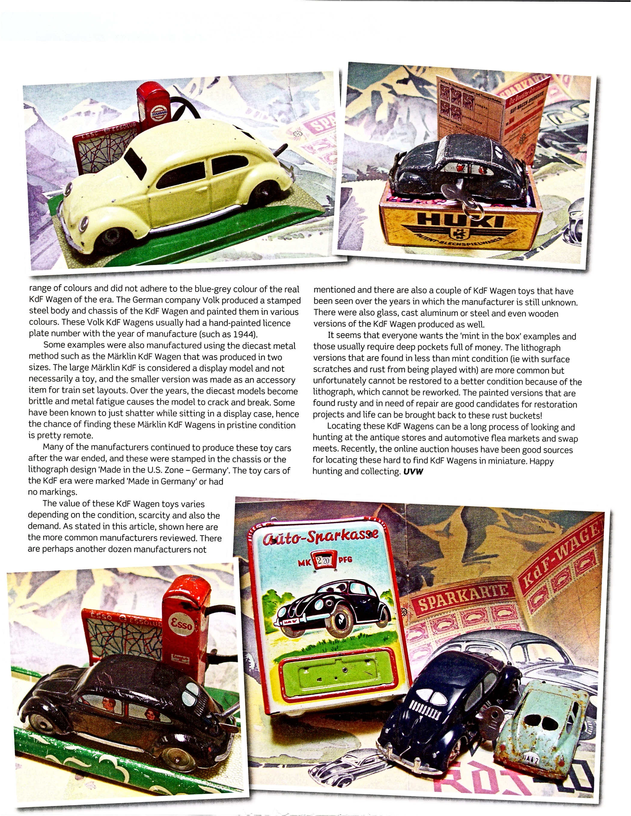 Most of the KdF Wagen cars were stamped out of tin plate metal and were either lithographed or painter. It is interesting to note that the majority of the manufacturers kept with the theme of the blue-grey color of the original KdF Wagen car.