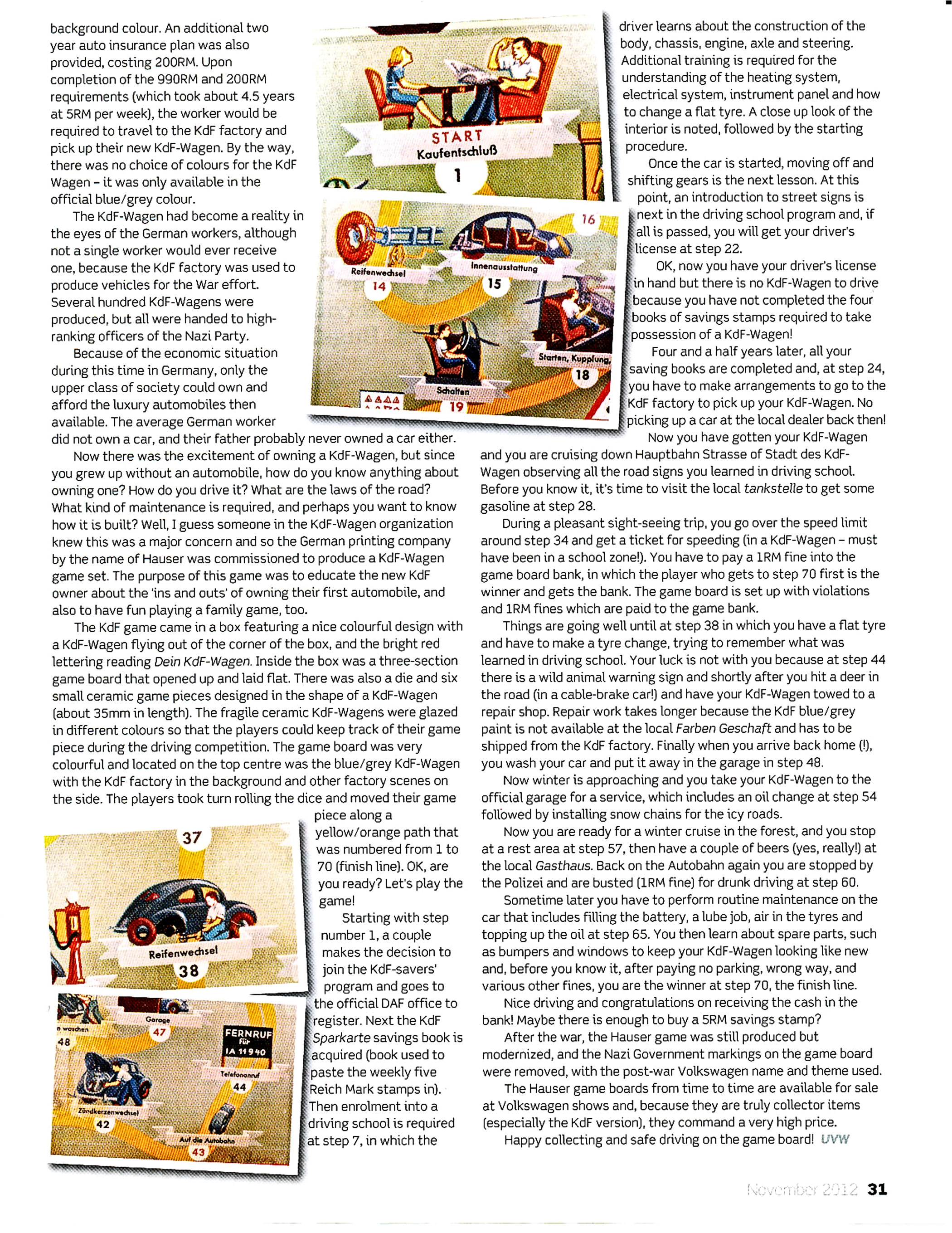 The KdF game came in a box with a nice colorful design of a KdF Wagen flying out of the corner of the box and the bright red lettering of ”DEIN KdF WAGEN." The KdF game was produced in two different sizes with different itemnumbers: 150/4 for the largest version and 150/ 2 1/2 for the smaller version.