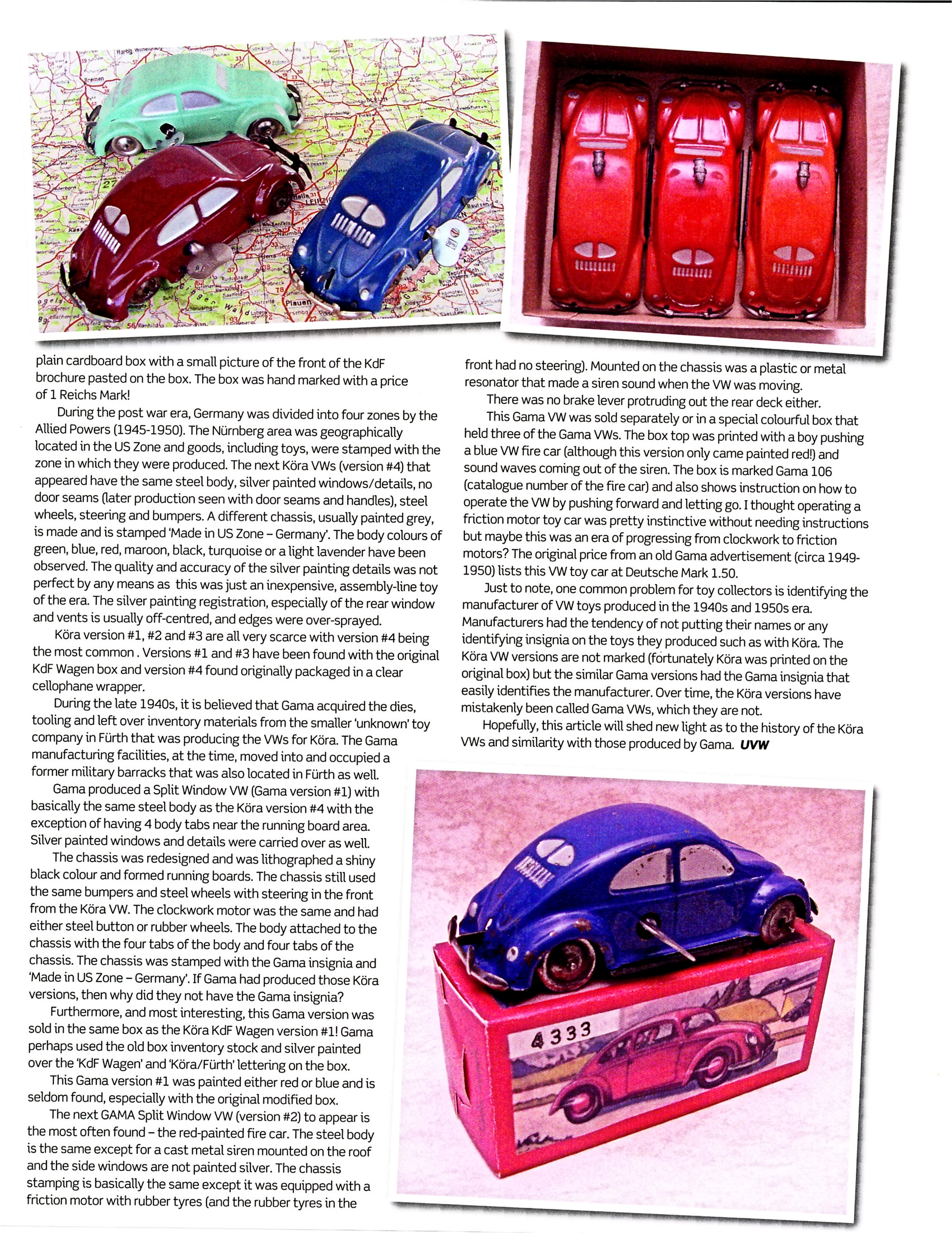 The KÖRA VWs are often called GAMAs and this article will clarify the differences. As far as the history goes, there were many toy firms located in the city of Fürth, near the larger city of Nürnberg that was the main toy district area of Germany.