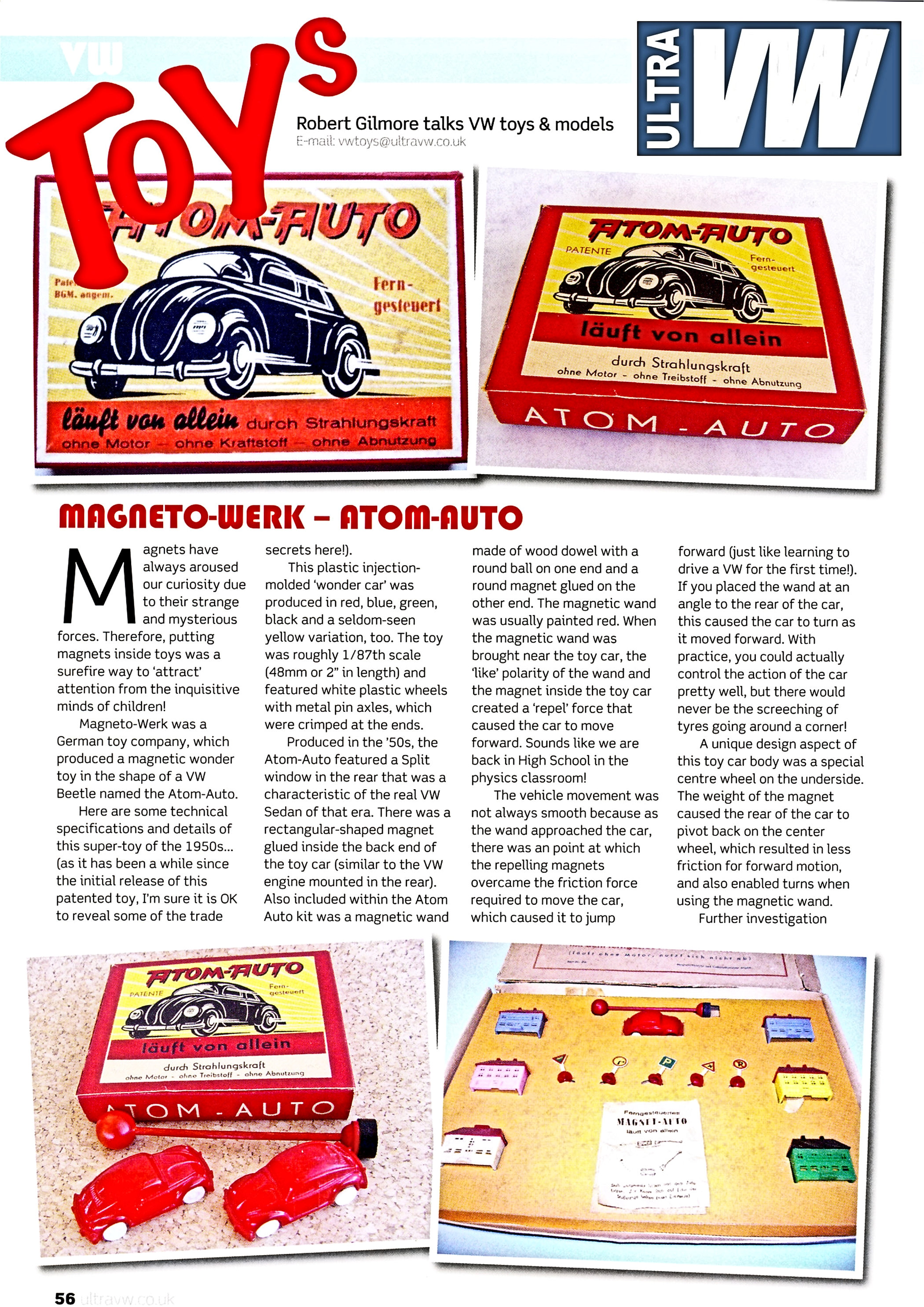 Plastic body with solid windows and details of the front and rear hood, doors, headlights, taillights and a rear split window. No chassis and plastic wheels on metal axles attached to the body and inside was molded “GERMANY”.