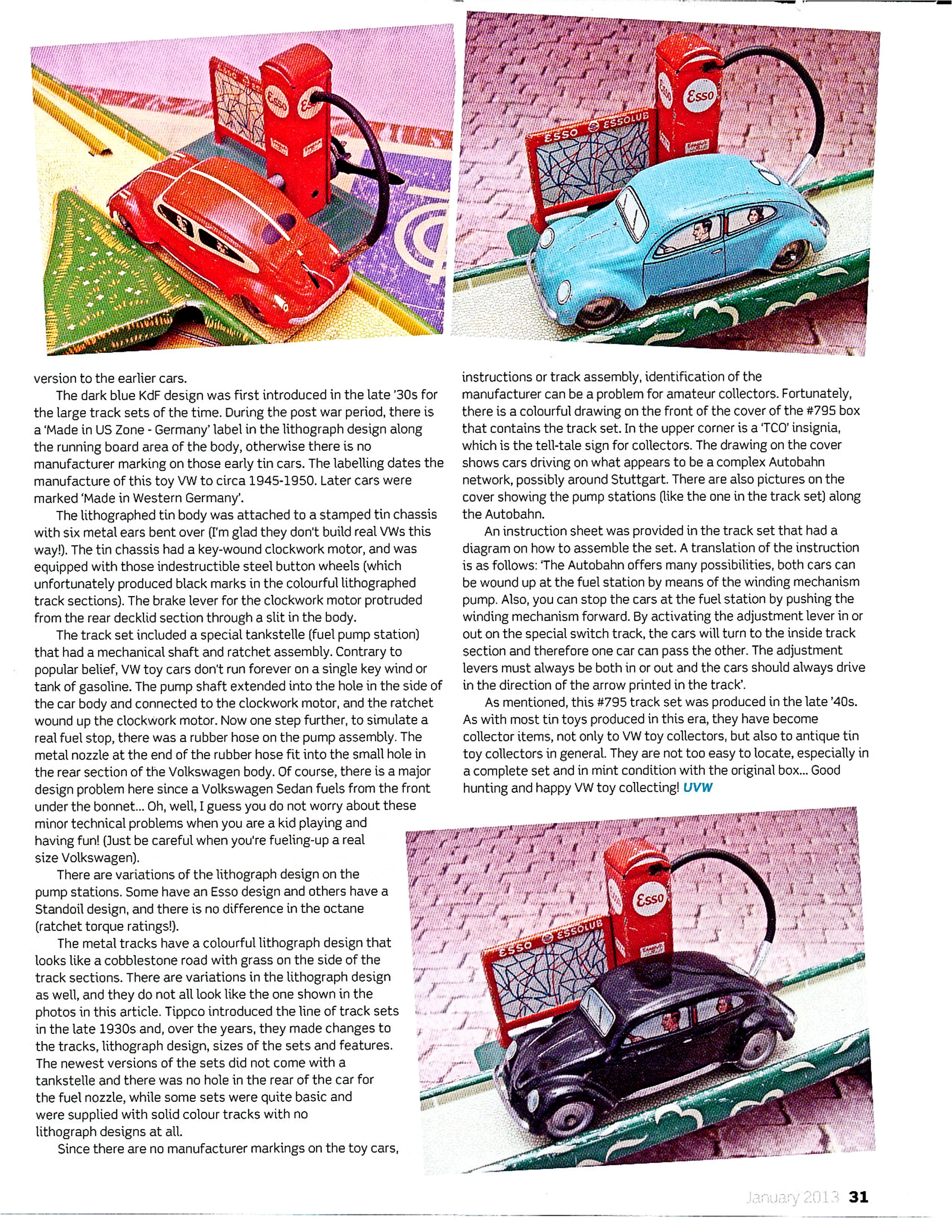 The TIPPCO track set included a special tankstelle (fuel pump station) that had a mechanical shaft and ratchet assembly (there was some German engineering done here - "basic ratchet and shaft 101"). Contrary to popular belief, VW toy cars don't run forever on a single key wind or tank of gasoline.