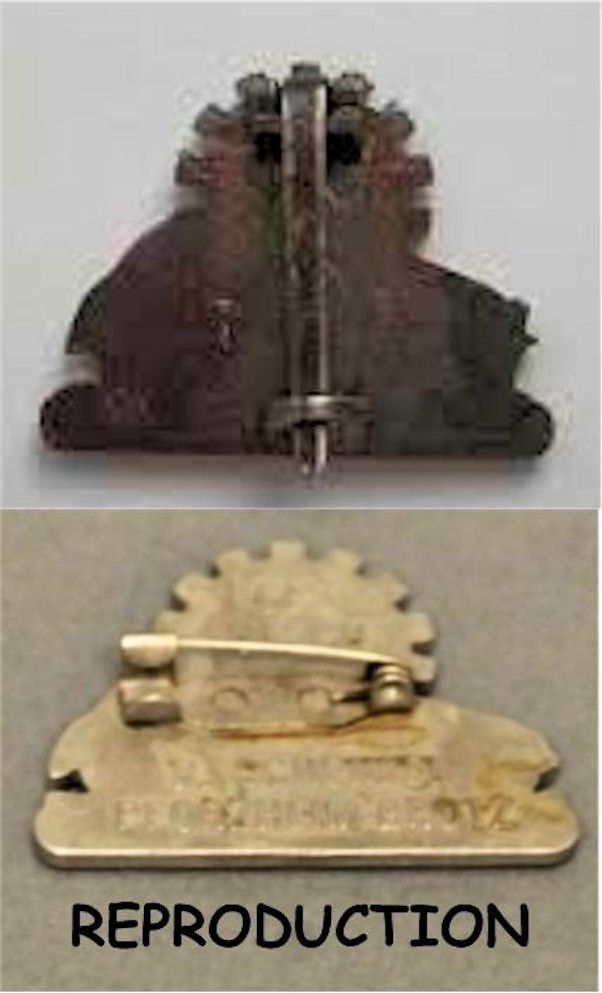 Since then these Cornerstone Ceremony badges have become true collector’s items to not only VW collectors but for also war time collectors in general. Of course, several, if not many styles of reproduction (repro) badges have been made over the years. Unfortunately, many of these repro badges have been sold and bought under the pretense that they were original Cornerstone Ceremony badges. So how do you tell the difference between an original and a repro badge? This article shows photos of the original and the several repro badges. Also, if you place an original badge in the palm of your hand and close your eyes, they are so lightweight that you cannot feel the weight of them. If you place a repro badge in your hand, it will feel like two or three metal coins because all of the repro badges are made out of a metal alloy and look like shiny metal. Furthermore, if you take a voltmeter and measure continuity, the repro badge will show continuity because it is made out of a metal alloy and the original will not because Bakelite is nonconductive. There is one repro badge that is a very close match to the original but the pin clasp is modern and the badge is also made from a shiny metal alloy. So now, this article becomes the benchmark, without exception, for determining if that Cornerstone Ceremony badge is an original or a reproduction. Good luck and happy collecting!