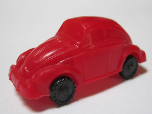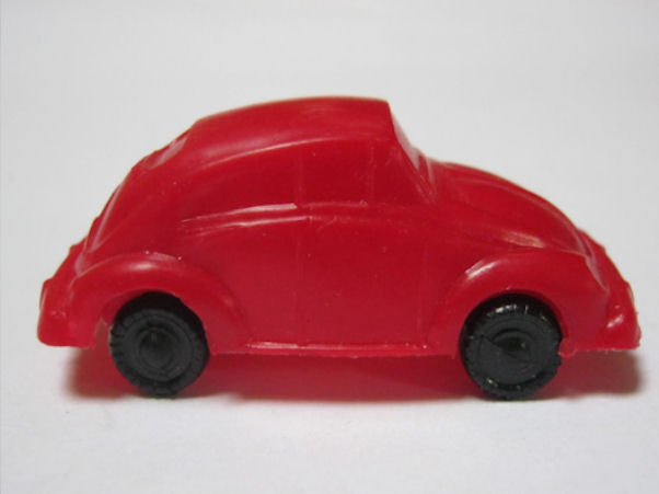 This seems a copy of the DS PLASTICS VW that was used for the PON VW game. Plastic body VW with solid windows and good details of front and rear hood, door seams and rear oval window with air louvers. No chassis and black ribbed wheels plastic wheels (unlike the other DS products that featured smaller smooth wheels).