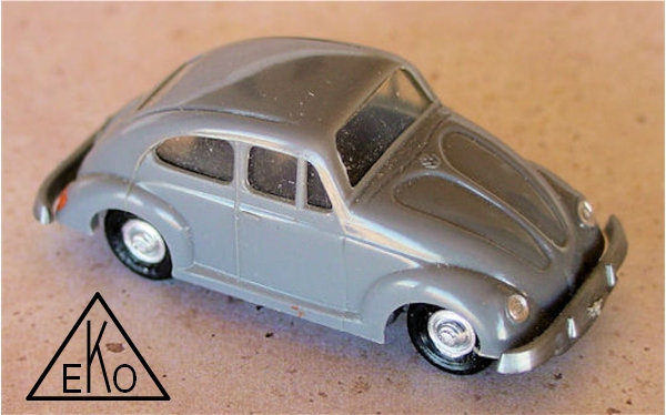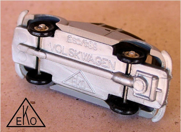 In 1957, Manuel Blasco Monserrat founded the toy company "Blasco Monserrat" in Barcelona, Spain. The company created the brand name "EKO". This name was given because of a spectacular comet that was seen in the year 1957: Ex Kuiper Object. The first models had no plastic window inserts and consisted of two parts: body and chassis. The windows were painted silver or remained unpainted. The second release showed plastic window inserts and the VW Convertible Beetle received also a driver and a passenger. The third release ist best known among collectors carrying the brand name TOYEKO. In the early 1960's EKO bought the molds from ANGUPLAS and released the former ANGUPLAS models under the EKO brand name.