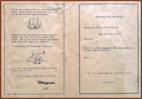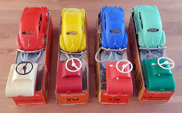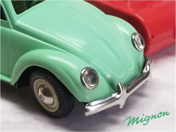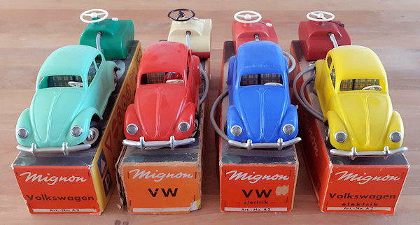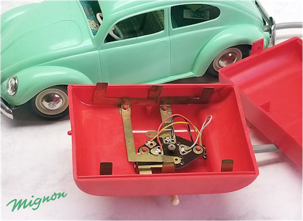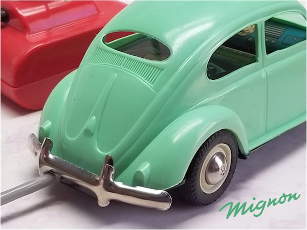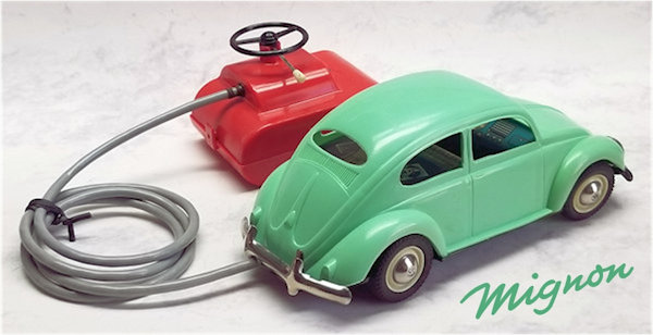The MIGNON Oval VW V3 was also remote controled that was improved and this version was battery operated. There was still mechanical steering but an electric motor drove the VW forward and backwards. There were even lights and horn.