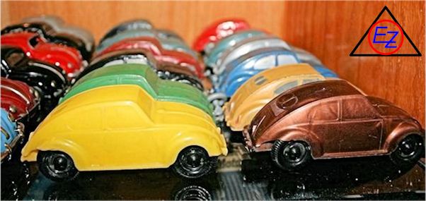 ECKERT & ZIEGLER GmbH developed the very first injection molding machine that could work on large scale in 1926. They were located in Cologne, Germany and they produced many different kind of products using the injection molding technique. ECKERT & ZIEGLER cooperated in the early 1940's with BASF who wanted to experiment with a newly developed plastic component. The result was the E&Z Split Window Beetle. For ECKERT & ZIEGLER it was a promotional item to show what could be made with the ECKERT & ZIEGLER machines.