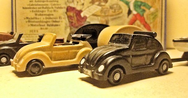 A similar set included 2 dark brown Kdf Wagen Sedans with only 1 having a tow hook. Also a black KdF Wagen Sedan and a Cabrio both with a tow hook. This set also included a cargo trailer, both large and small camping trailers and a boat trailer.