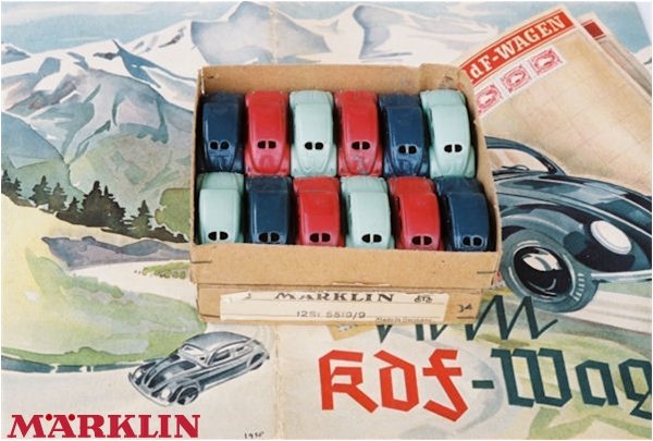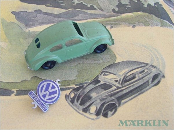 Gebr. Märklin & Cie. GmbH (MÄRKLIN) was founded in 1859 by Theodor Friedrich Wilhelm Märklin and is based in Göppingen in Baden-Wurttemberg, Germany. It originally specialized in doll house kitchen accessories, but after 1891 the sons of T.F.W. Märklin focused on tin toys and trains when they acquired the Firm of Ludwig Lutz. Although they were most famous for trains, they also produced some beautiful tinplate and diecast toys also. The VW toys were initially meant as accessory for the train sets.