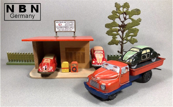 The Nürnberger Blechspielwarenfabrik is de facto the successor of the pre WW2 company of Georg Levy (GELI). Georg Levy emigrated in 1934 because of the fact that he was prosecuted being a Jew. He appointed Mr. Karl Ochs as the new manager and Mr. Ochs subsequently bought the company. This was the start of NBN.