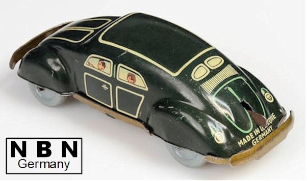 There is a similar NBN car lithographed in orange or green with pin striping (split front window) that represent a Czech Tatra vehicle of the time. This Tatra vehicle is often called and sold as a Volkswagen, which it is not.