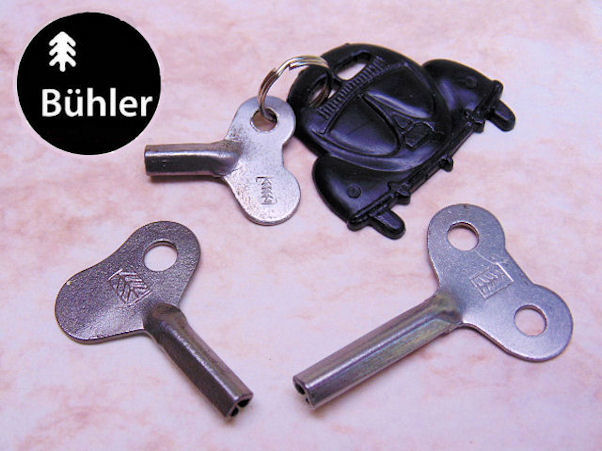 The chassis was also stamped out of tin plate and featured a key wound clockwerk motor with the keyhole located in the rear quarter panel on the passenger side of the body. Rubber tires were mounted on metal rims and were attached to the clockwerk motor. The stop or brake lever for the clockwerk motor protruded out the rear deck lid. The original key for the clockwerk motor has a hole on one side and a symbol of a fir tree stamped in the middle of the key. The well-known clockwerk Specialist Company, Gebrüder Bühler, made the motors and their trademark was the fir tree. The front part of the chassis was formed in such a way that when the front rubber wheels and axle were attached to the chassis, they were cocked at an angle. This caused the car to drive around in a large circle. The chassis was made to include the running boards and the front and rear bumpers that were bent up at the ends of the chassis. The body was secured to the silver painted tin plate chassis with eight bent over metal tabs of the body. The chassis was sometimes ink stamped “Made in Germany” or had no special markings or lettering and this helps identify this TIPPCO version to the KdF Wagen era.