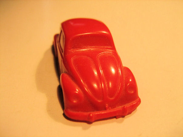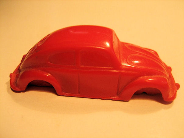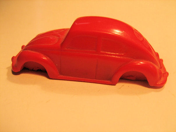 Solid plastic body with solid windows with details of the front and rear hood and doors. No chassis; seems to be a mold or possibly a later copy? Marked with “TY”.