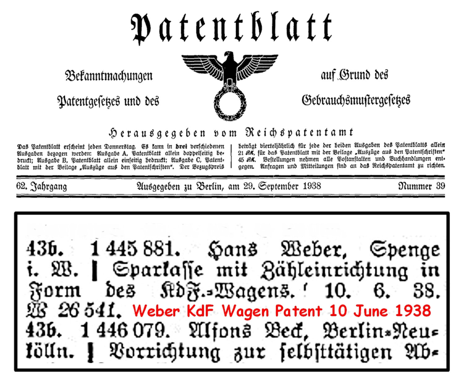 The Weber coinbox was also used as promotional item by a bank located in Hamburg, Germany in 1939 - 1941. The bank was called Neue Sparcasse von 1864 ("new savingsbank of 1864"). The inserted a sticker with their logo above the rear splitwindow (see the pictures).