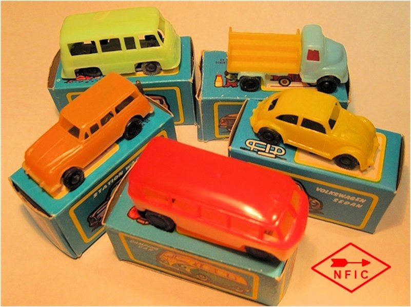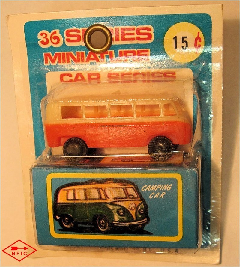 NFIC, located in Hong Kong, was one of the many producers of plastic toys. They also offered cheap small-scale toys under the label of National Toys, which were mainly copies of Matchbox toys. There were 36 cars in the National Miniature Car Series, including the VW BUS "Camping Car," No. 3120.