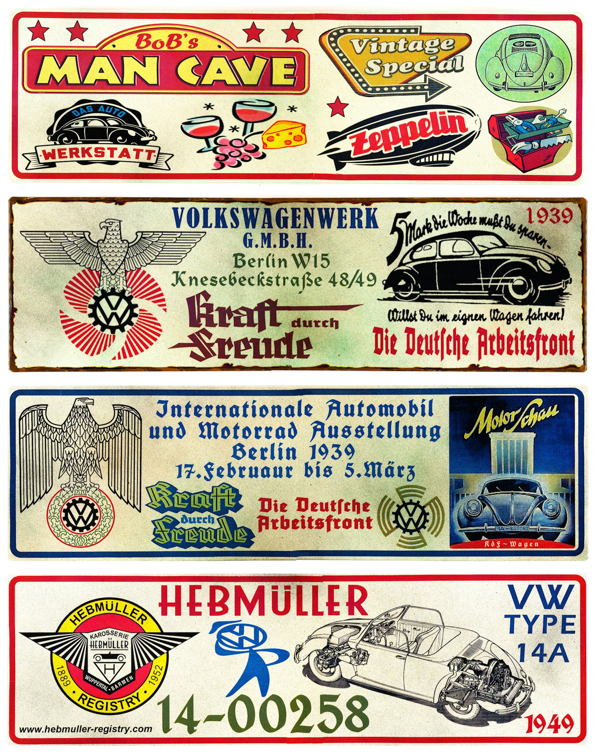 I have been making decals for many years for the Vintage VW Restor-Version projects I have created. Taking it one step further, it was easy to make the artwork larger to create some metal signs as well. Some of the artwork uses the older VW literature as a guide and some of the artwork is created or remastered from scratch. I use Corel PaintShop Pro X9 and MS Visio Pro 2016 to create the graphics and a Xerox Phaser 6510 color laser printer to print the water transfer decals. I acquire the metal signs at a local hobby store, paint them and then apply the custom decals. Most of the signs made are used for display in my “Man Cave” hobby room or special project for other friends. Please check them out !!