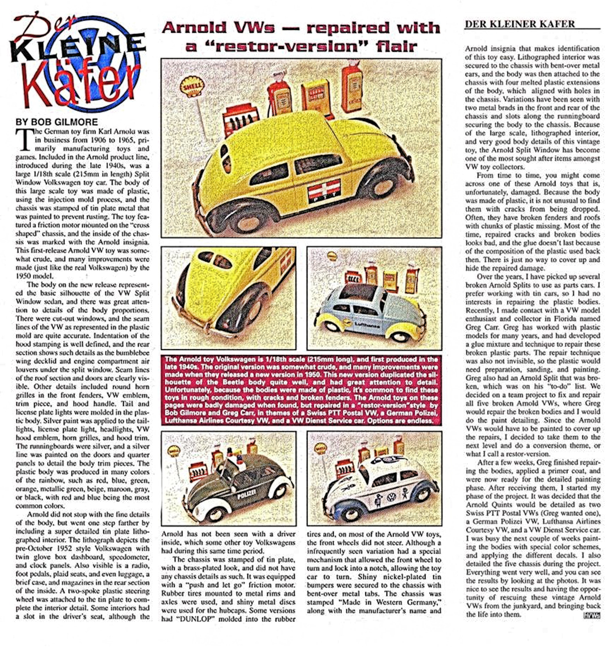 The German toy firm by the name of KARL ARNOLD was in business from 1906 to 1965 primarily manufacturing toys and games. Included in the Arnold product line and introduced during the late 1940s was a large 1/18th scale (215mm in length) Split Window Volkswagen toy car.