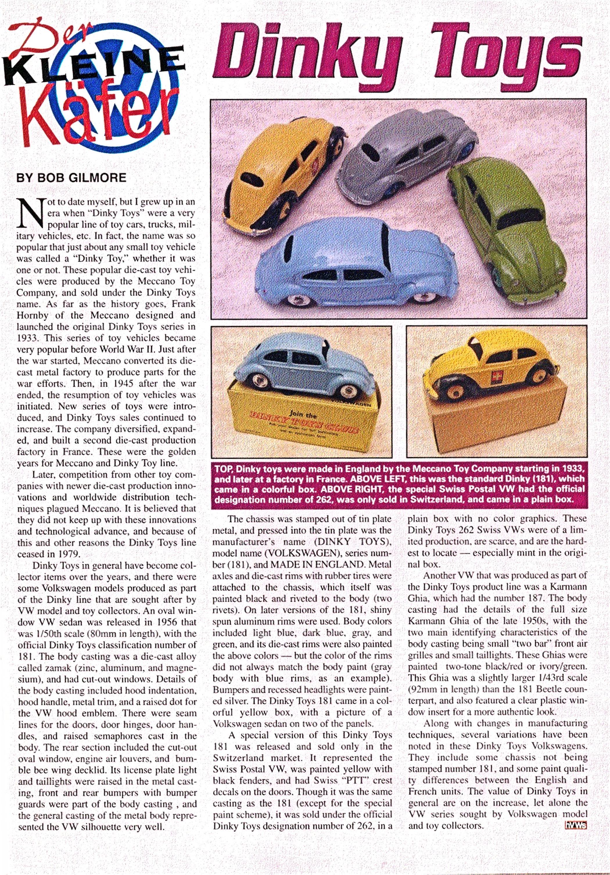 DINKY TOYS in general have become collector items over the years and there were some Volkswagen models produced as part of the DINKY line that are sought after by VW model and toy collectors. An oval window VW sedan DINKY TOYS was released in 1956 and was 1/50th scale (80 mm in length).