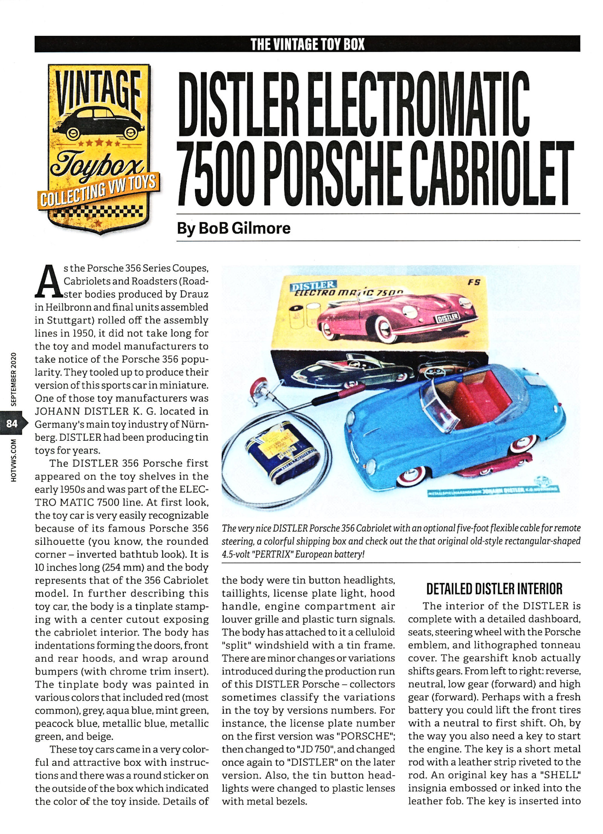 It did not take long for the toy and model manufactures to take notice of the Porsche 356 popularity. They tooled up to produce their version of this sports car-in miniature. One of those toy manufactures was JOHANN DISTLER K. G. located in Germany's main toy industry of Nürnberg. DISTLER had been producing tin toys for years.