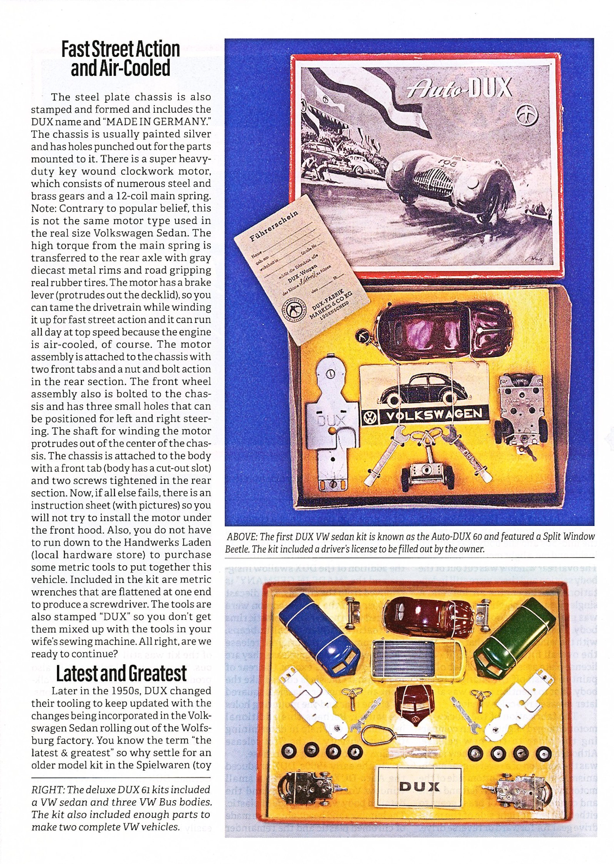 The Auto-DUX metal toy cars had the concept of a kit consisting of several parts and could be put together and taken apart again. The metal kit cars in the product line included, for an example, a 1950’s era Mercedes Benz or BMW and to the delights of the VW enthusiasts, a Volkswagen Sedan and also VW Busses were produced as well.