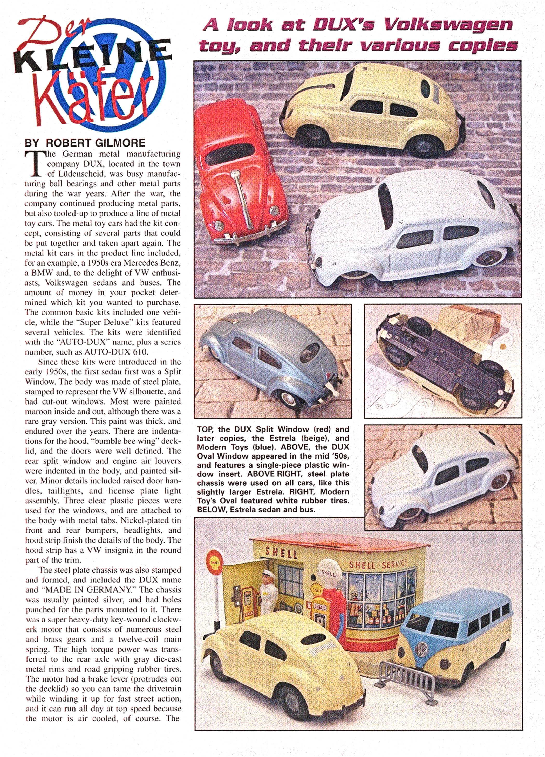 Since the introductions of these AUTO-DUX kits were in the early 1950’s, the VW Sedan first produced was of the split window model type. The body is steel plate and stamped to represent the VW silhouette and has cut out windows.