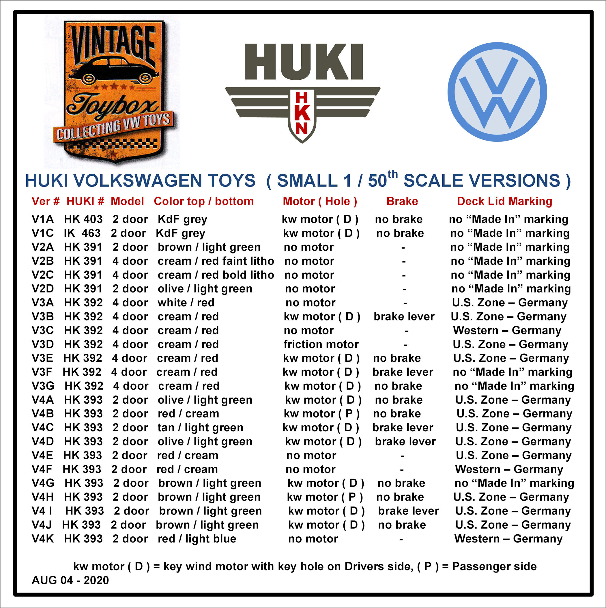 I have come to the conclusion that these post war period HUKI production VWs had no “MADE IN” markings on the rear deck lid. Later came the “MADE IN US ZONE” series and the final production era was marked “MADE IN WESTERN GERMANY”.
