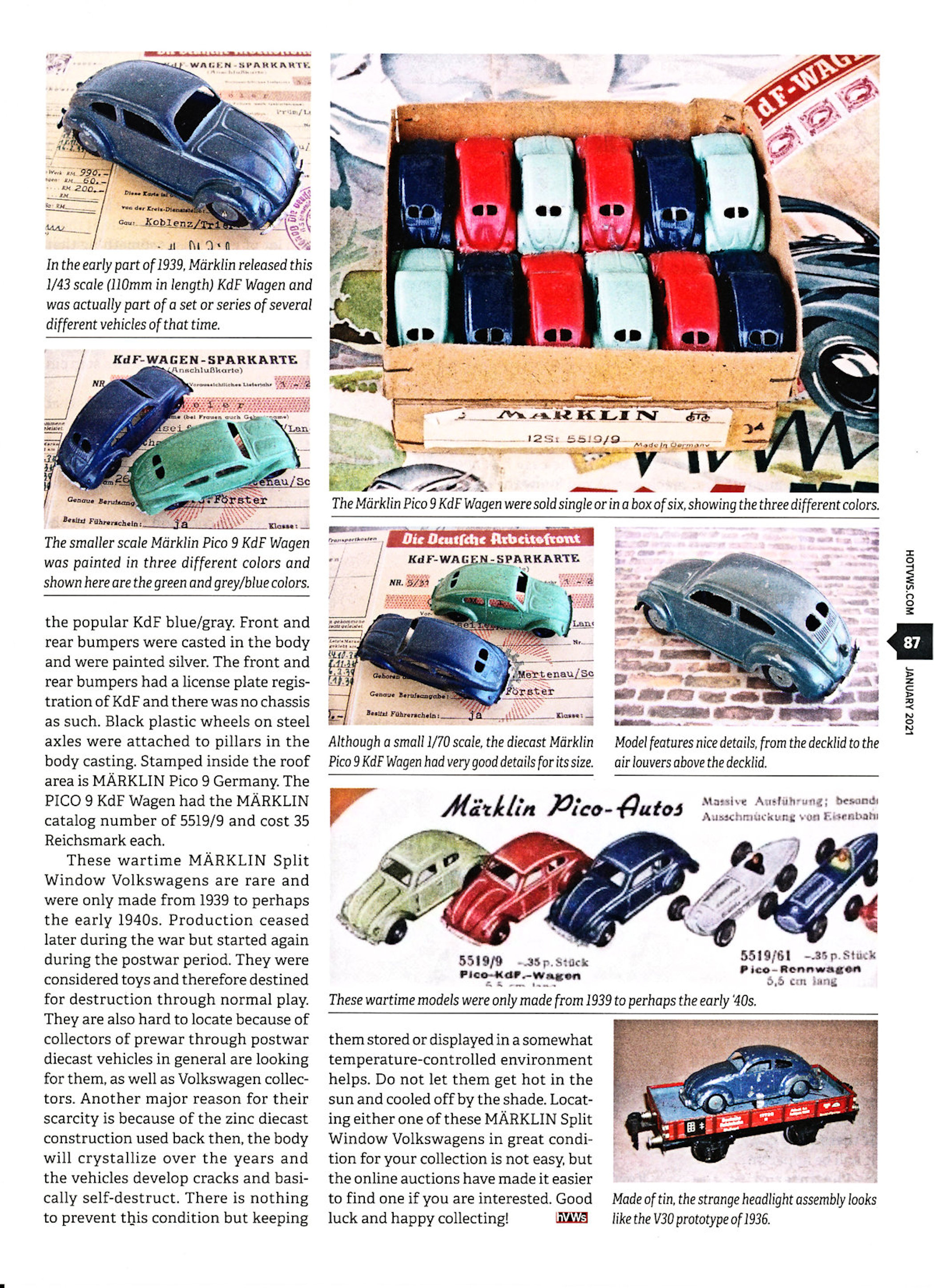 The smaller 1/70th scale version was also of zinc alloy diecast construction and the body had cut out windows as well and very good details of the front and rear deck lid, seam lines and ten air louvers under the rear split window. The headlights and taillights were also raised in the casting.