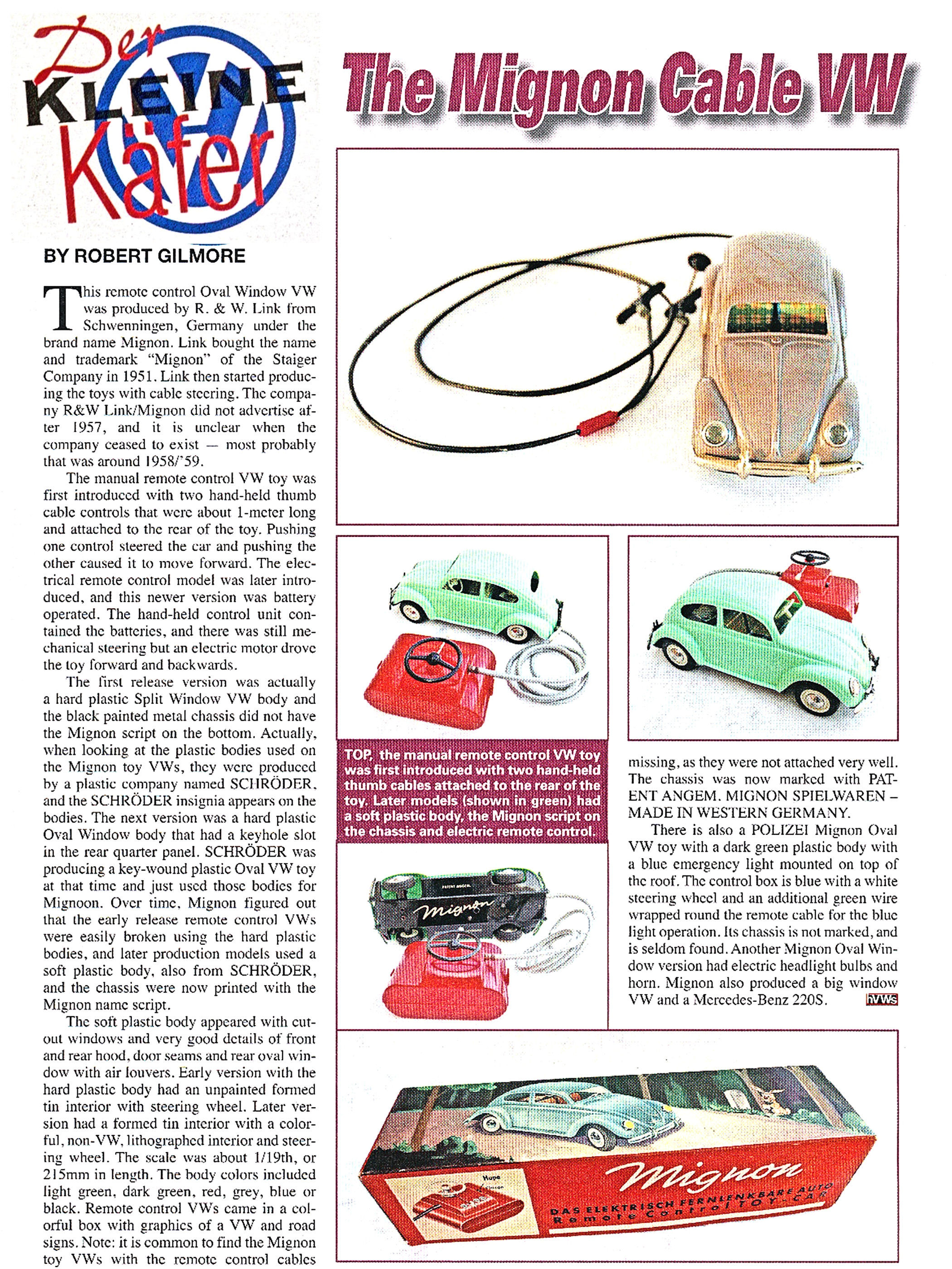 The MIGNON Oval VW V3 was also remote controlled that was improved and this version was battery operated. There was still mechanical steering but an electric motor drove the VW forward and backwards. There were even lights and horn.