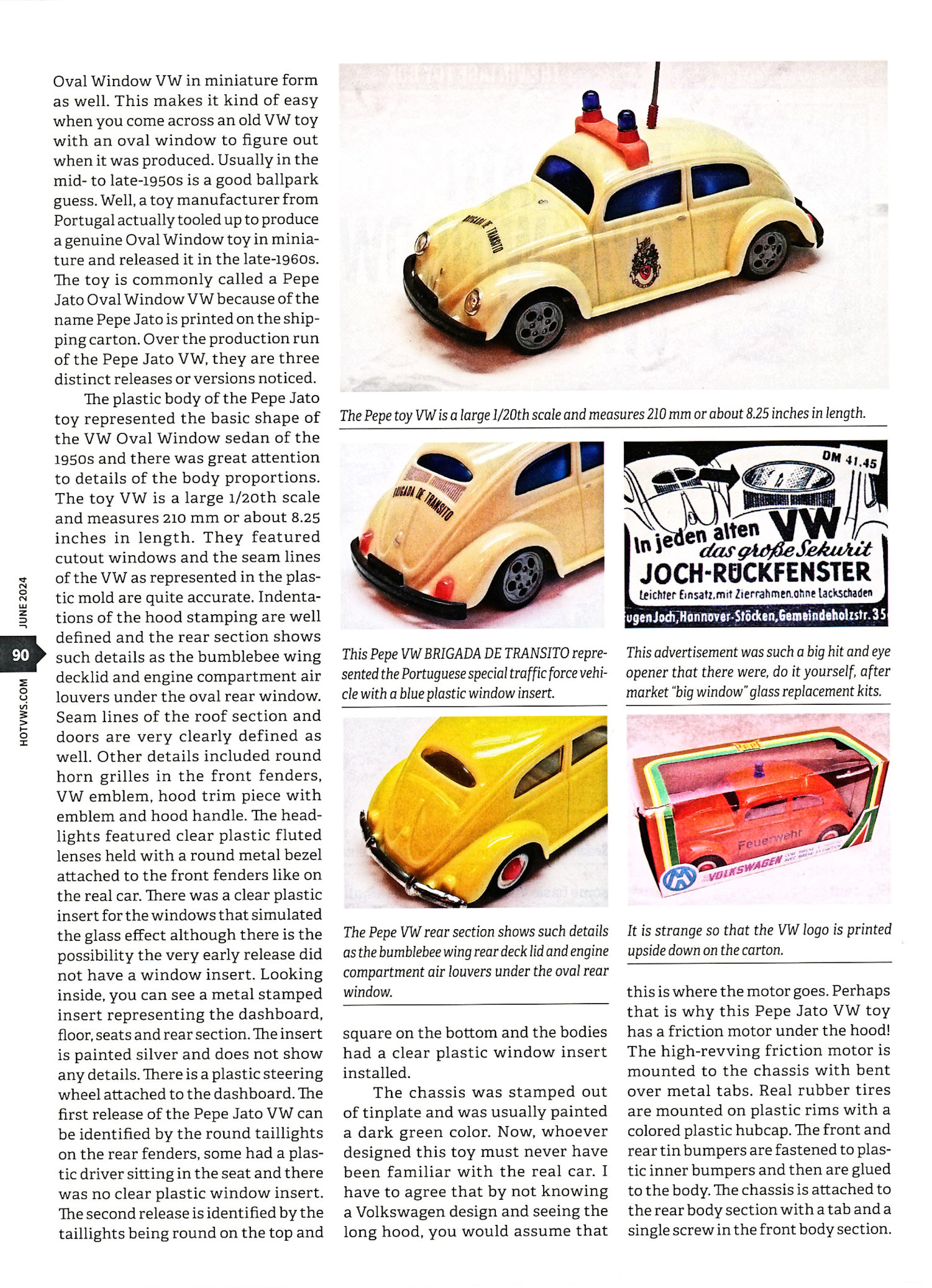 Although the Oval Window Volkswagen Sedan was only produced for five years, some toy manufacturers wanted to keep their toy Volkswagen product line up to date and produced the new style Oval Window VW in miniature form as well. This makes it kind of easy when you come across an old VW toy with an oval window to figure out when it was produced. Usually in the mid to late 1950s is a good ball park guess.