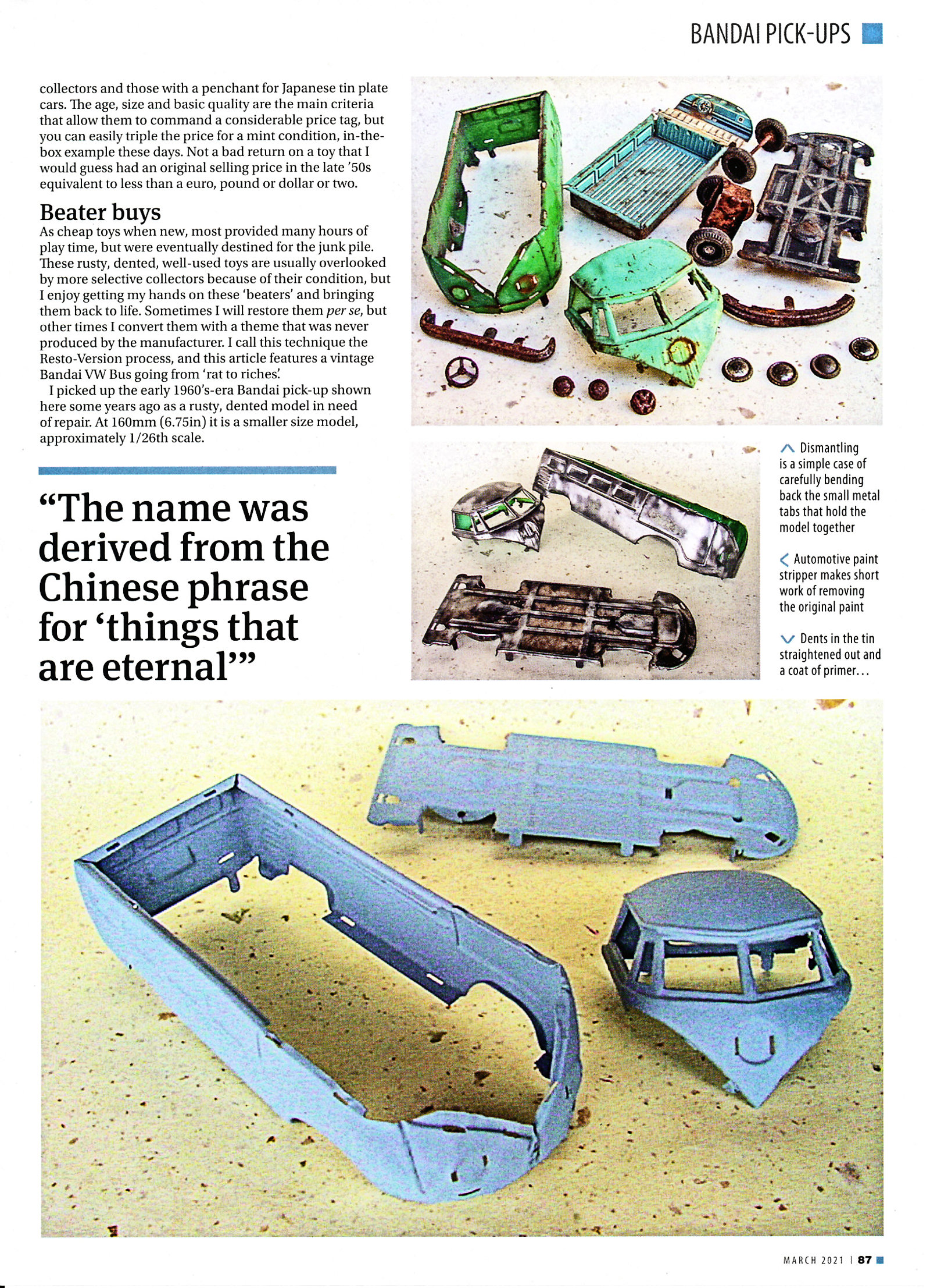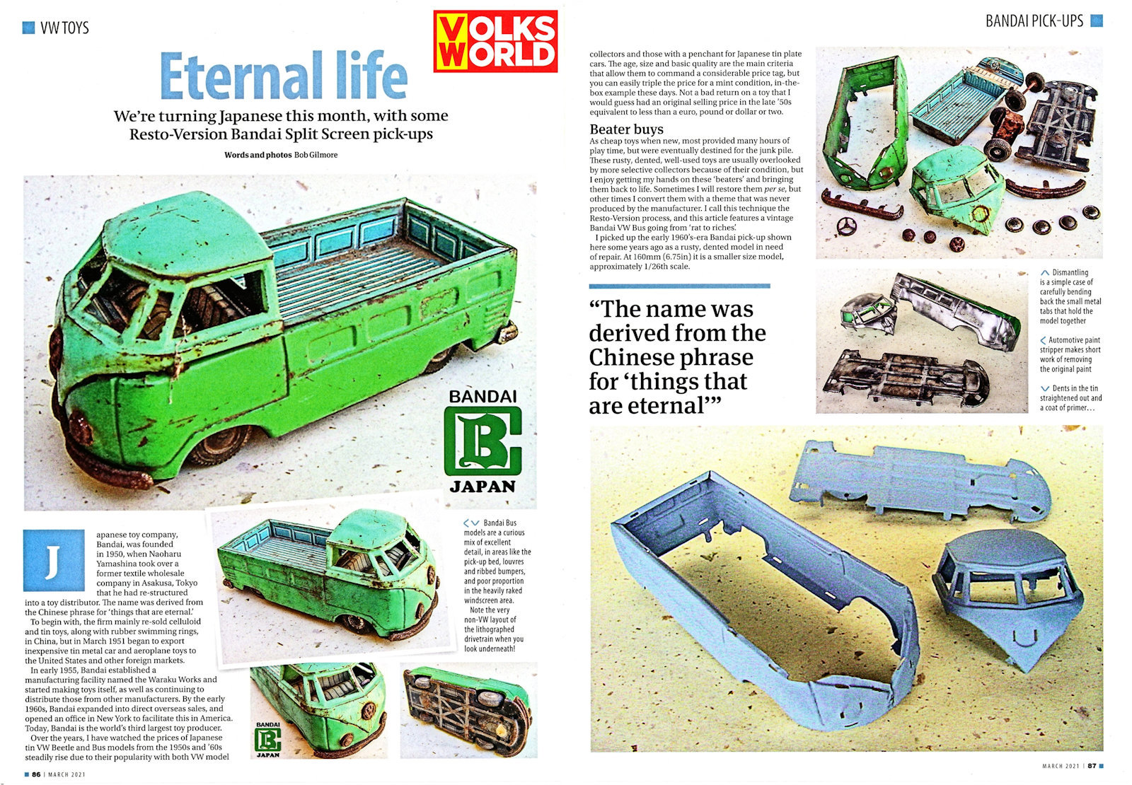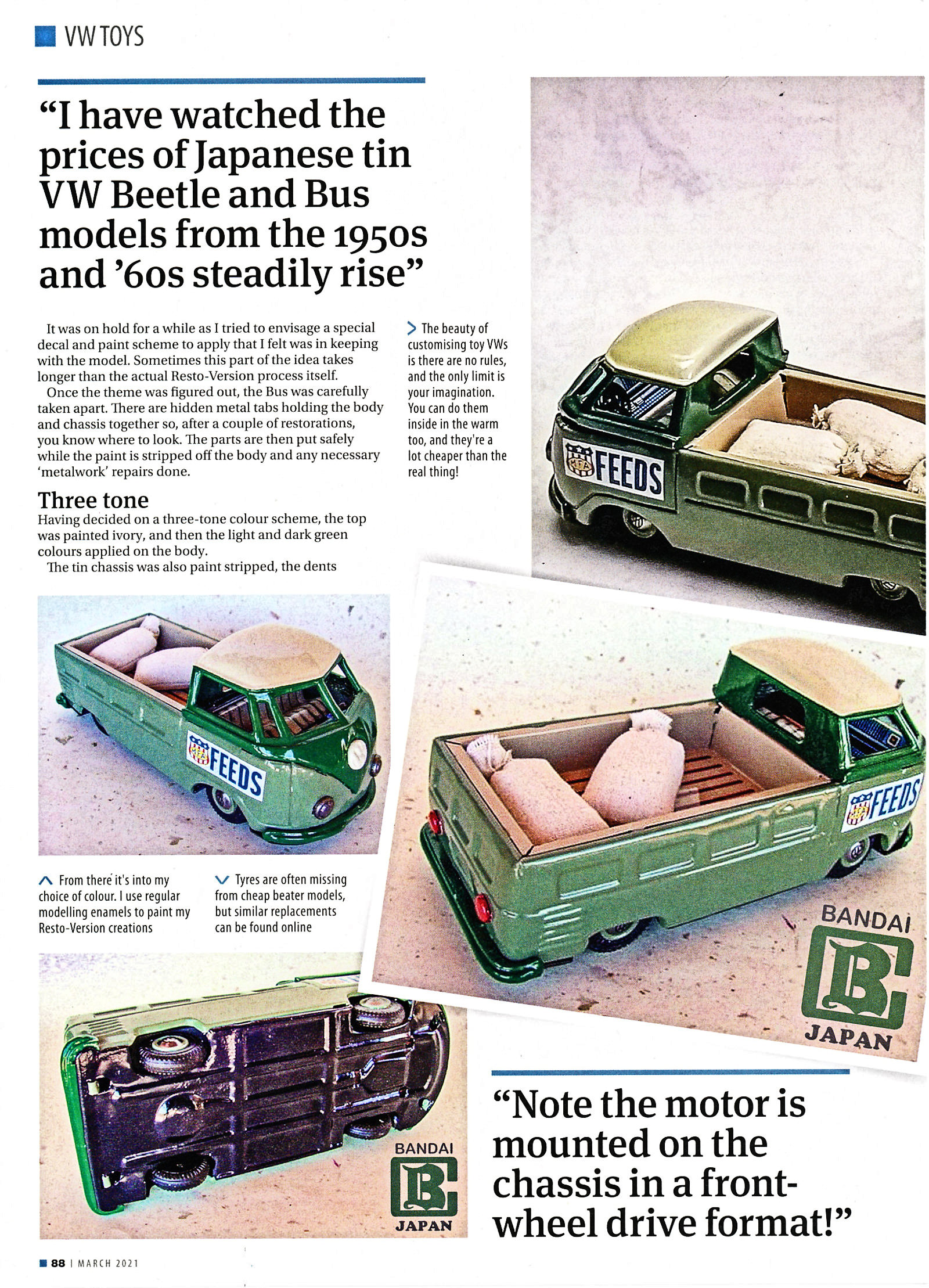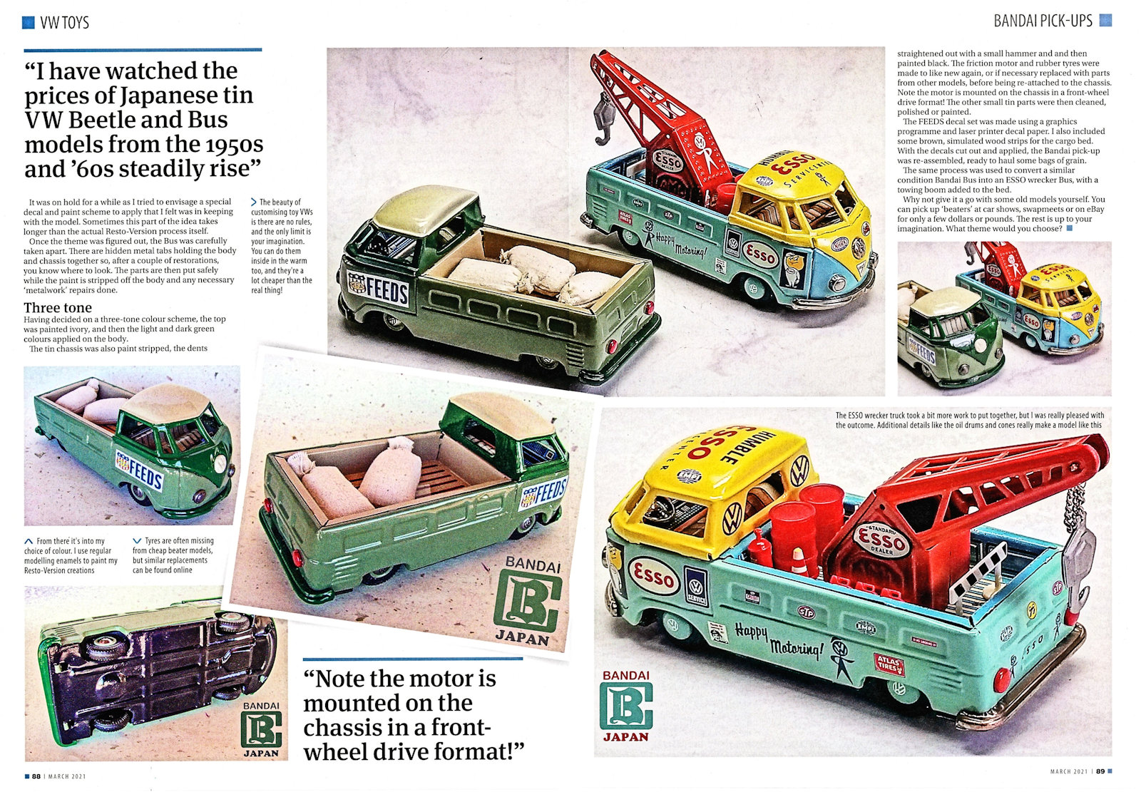 These vintage VW toys are not only restored them per se, but they are taken to the next level and making them into a conversion representing a special theme that was never produced from the manufacturer.
