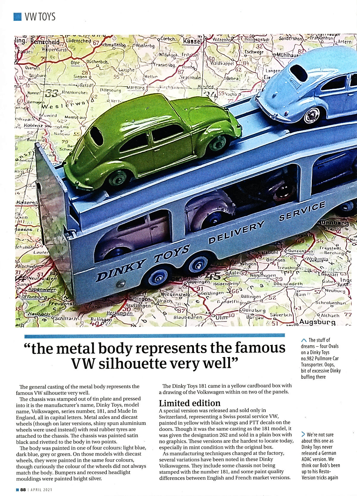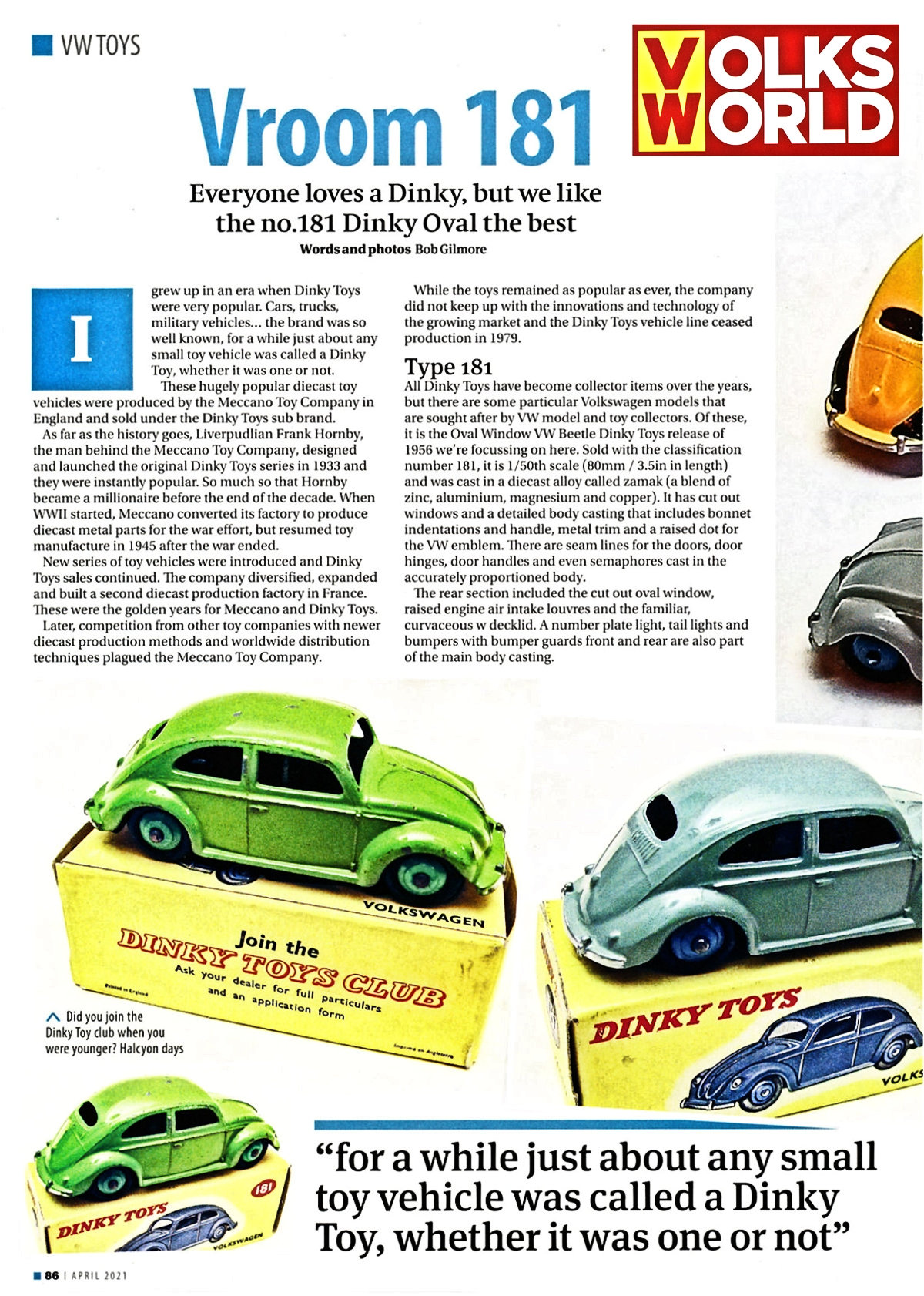 Dinky Toys was the brand name for die-cast zinc alloy miniature vehicles. They were made in England from 1934 to 1979, at a factory in Binns Road in Liverpool.