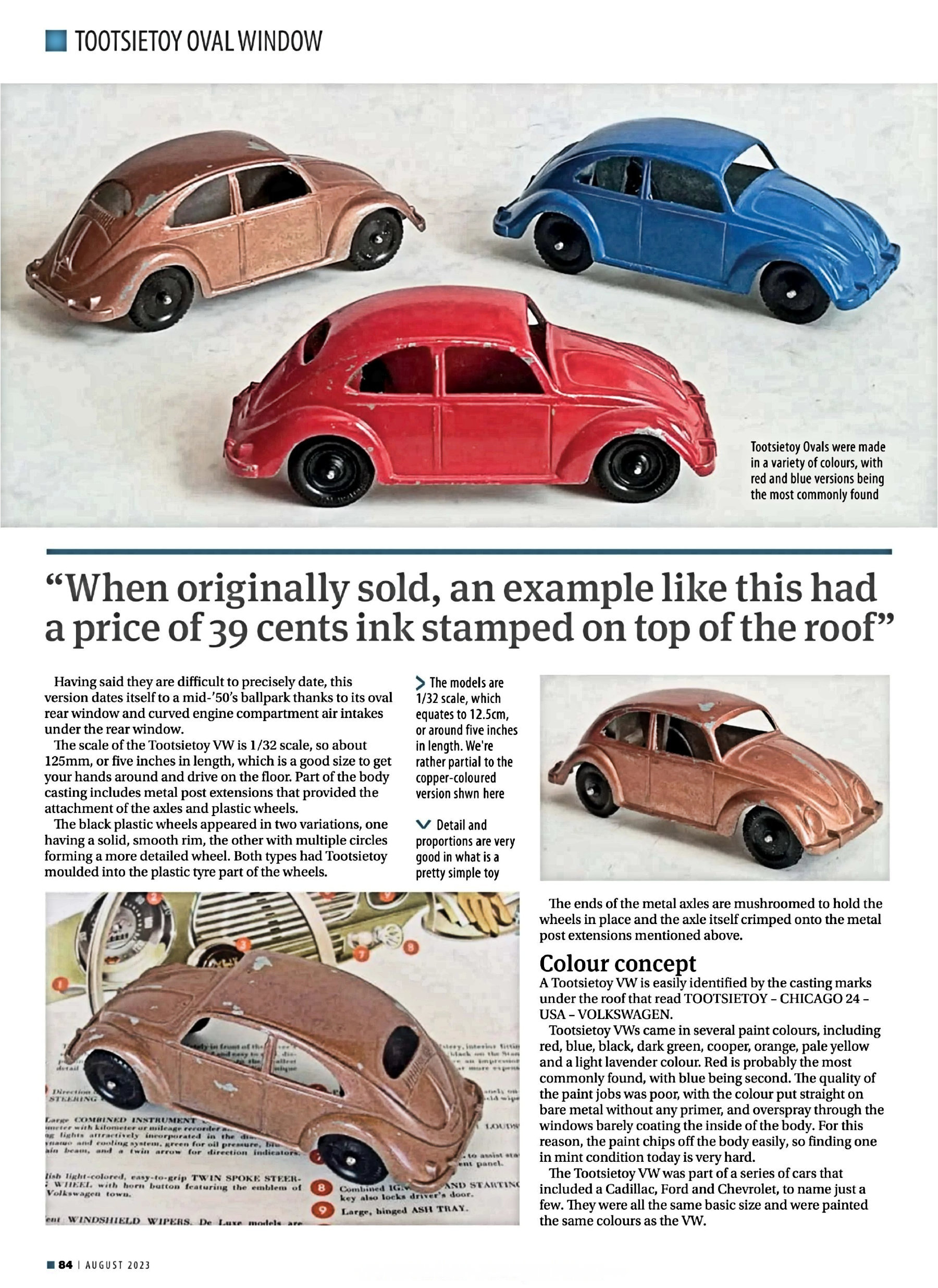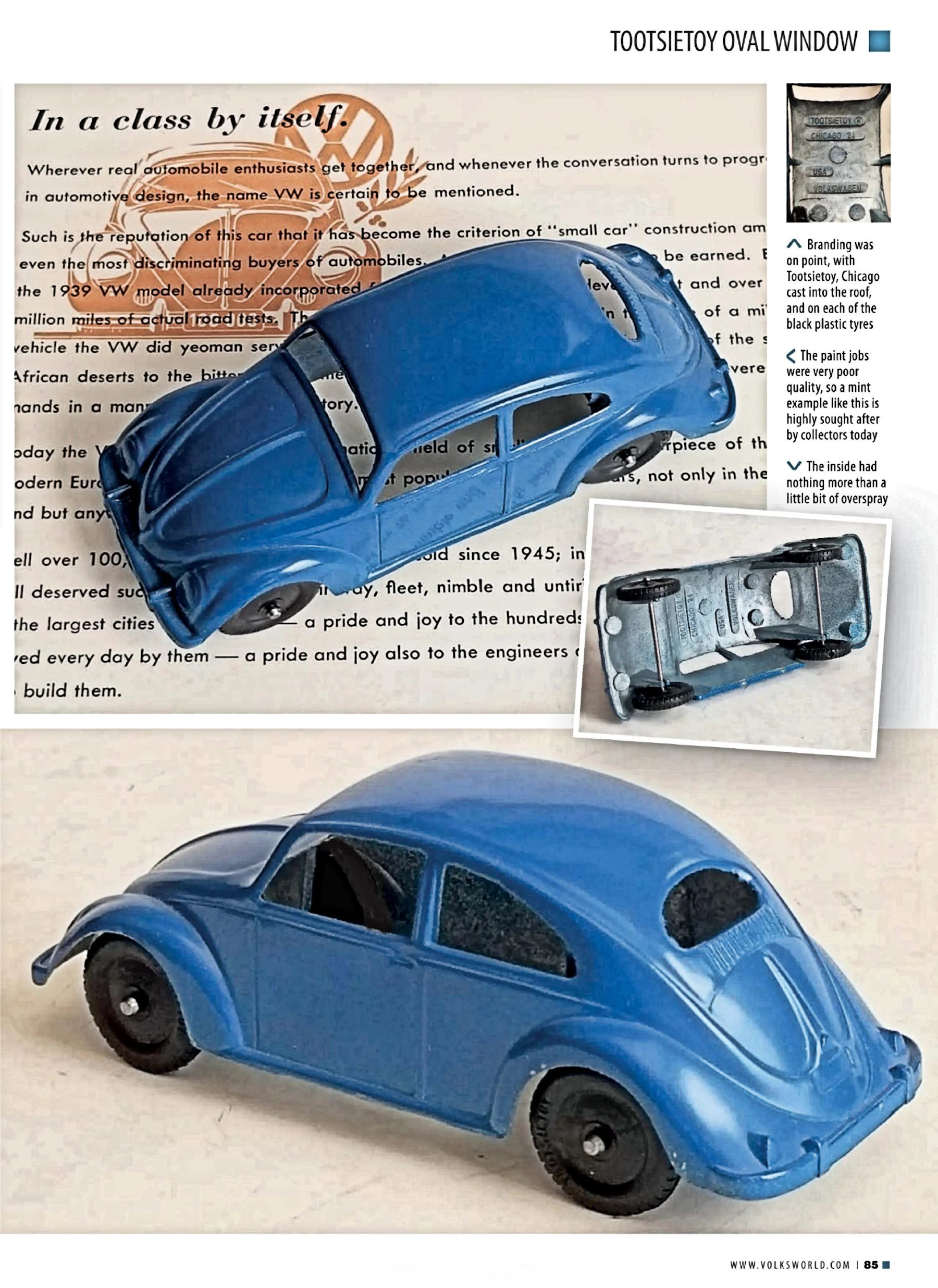 Here is an early diecast Volkswagen Sedan manufacturer by Tootsietoy. This version was introduced around 1958 but the exact date is difficult to determine.