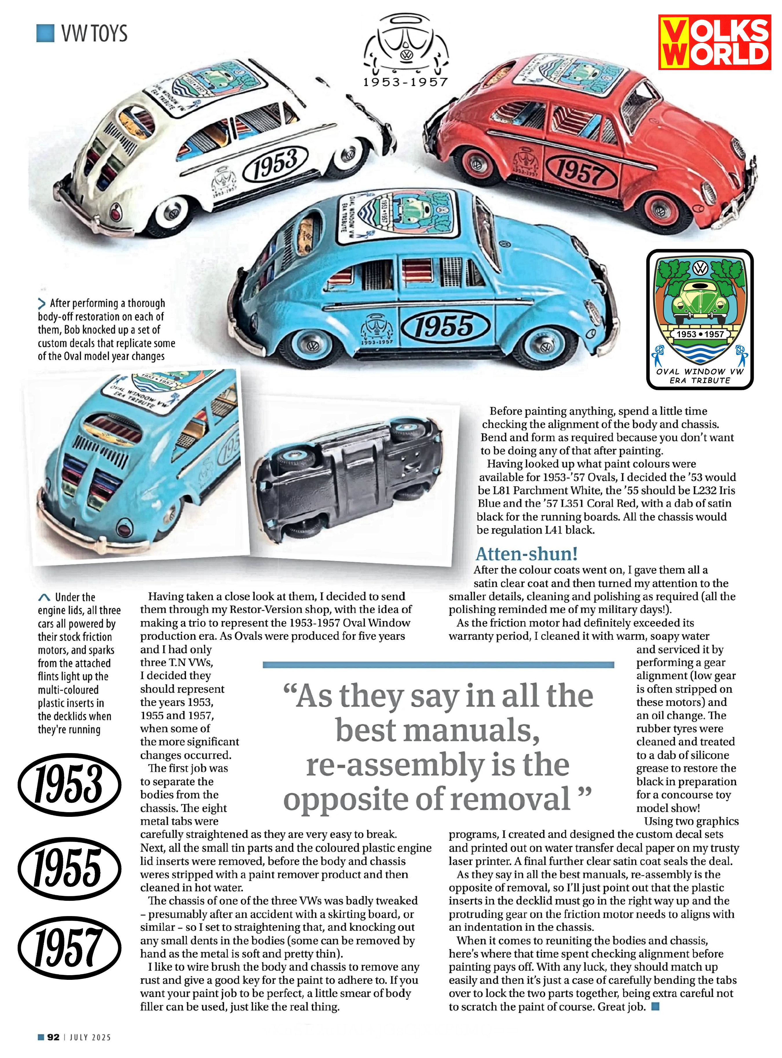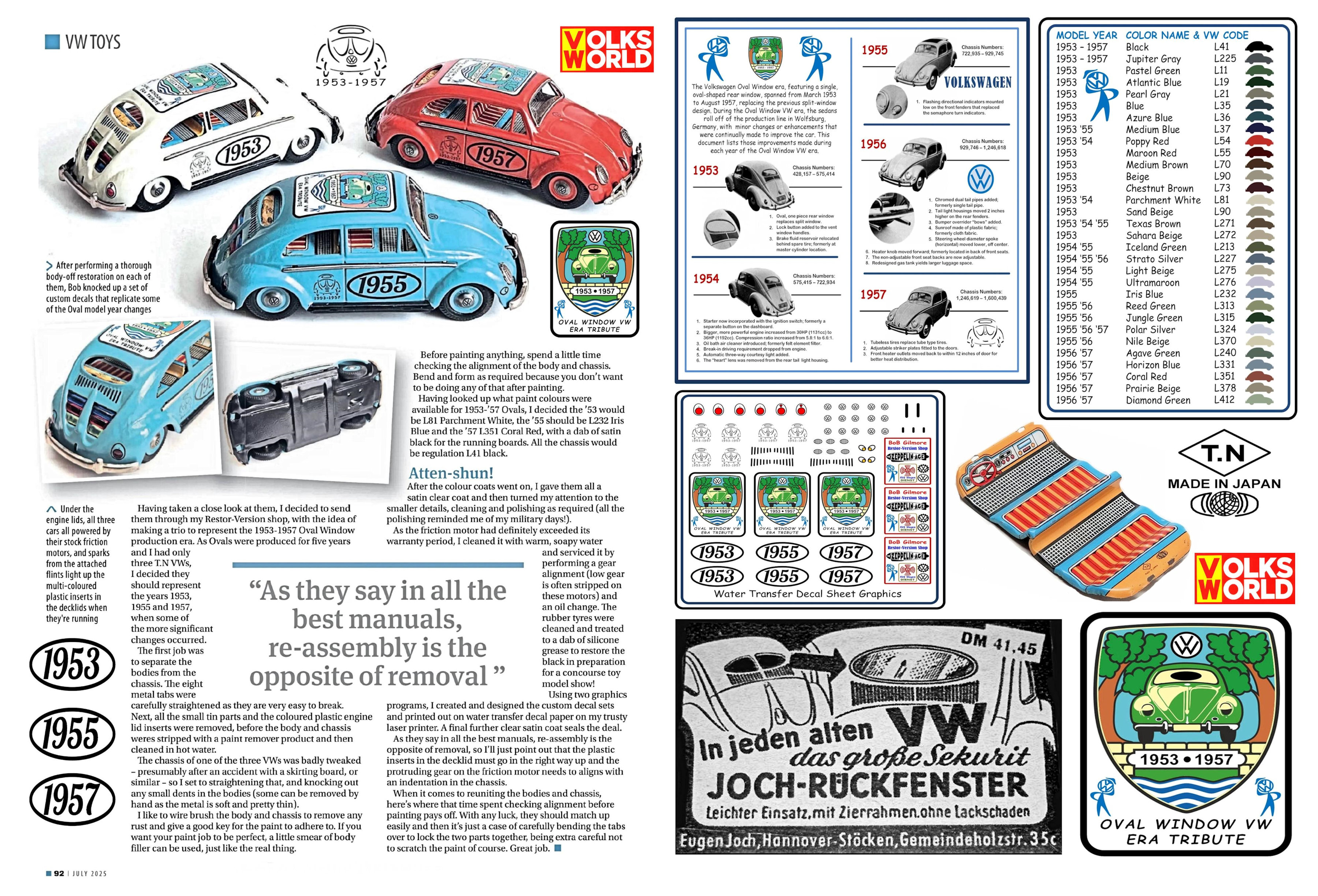 Although the Oval Window Volkswagen Sedan was only produced for five years, some toy manufacturers wanted to keep their toy Volkswagen product line up to date and produced the new style Oval Window VW in miniature form as well. This makes it kind of easy when you come across an old VW toy with an oval window to figure out when it was produced. Usually in the mid to late 1950s is a good ball park guess.
