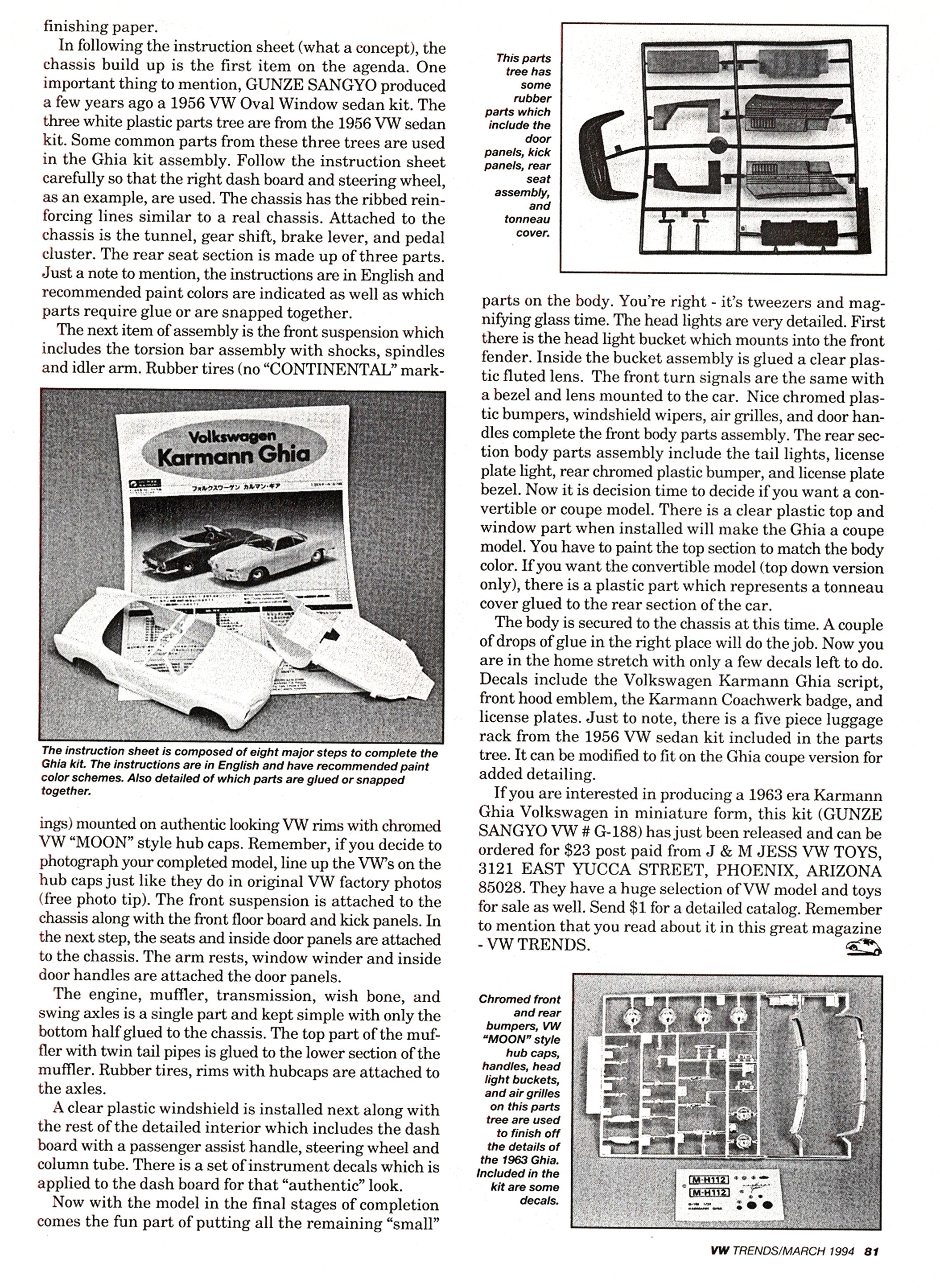 Well it looks like GUNZE SANGYO, the Japanese model kit manufacturer, has delighted the Volkswagen enthusiasts with a 1/24 scale 1963 Karmann Ghia Volkswagen model kit. Just think, owners of a full size 1963 Karmann Ghia can now have an exact small scale version of their pride and joy.