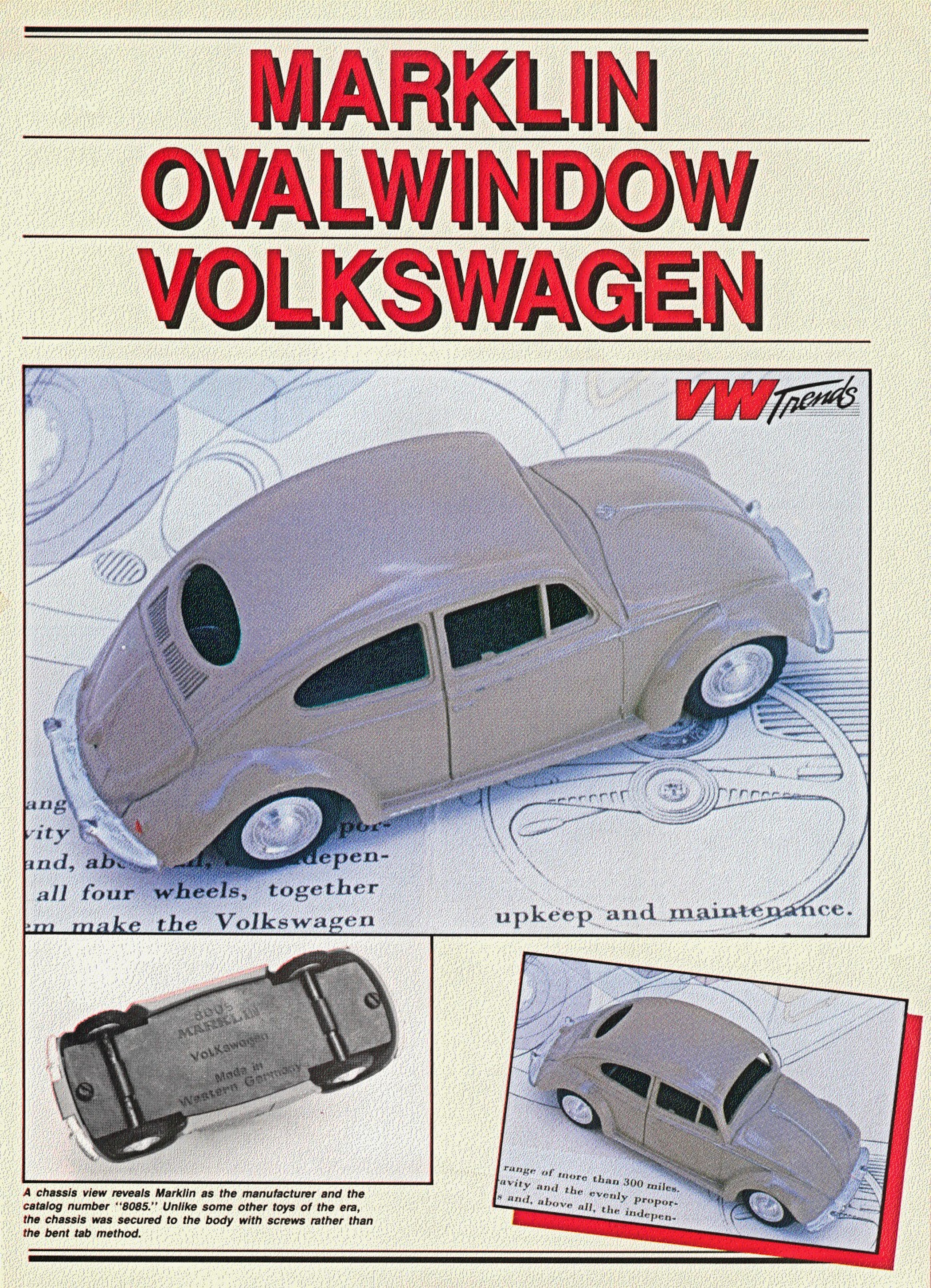 Diecast metal body with cut out windows and great details of front and rear hood, door seams and rear oval window with air louvers. Metal chassis with metal axles, rims and rubber tires. Chassis stamped MÄRKLIN - MADE IN GERMANY. MÄRKLIN catalogue nr. 8005.