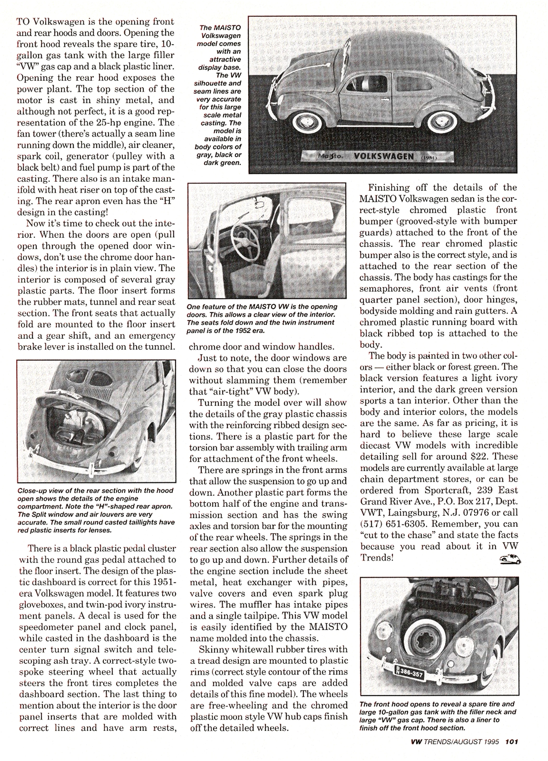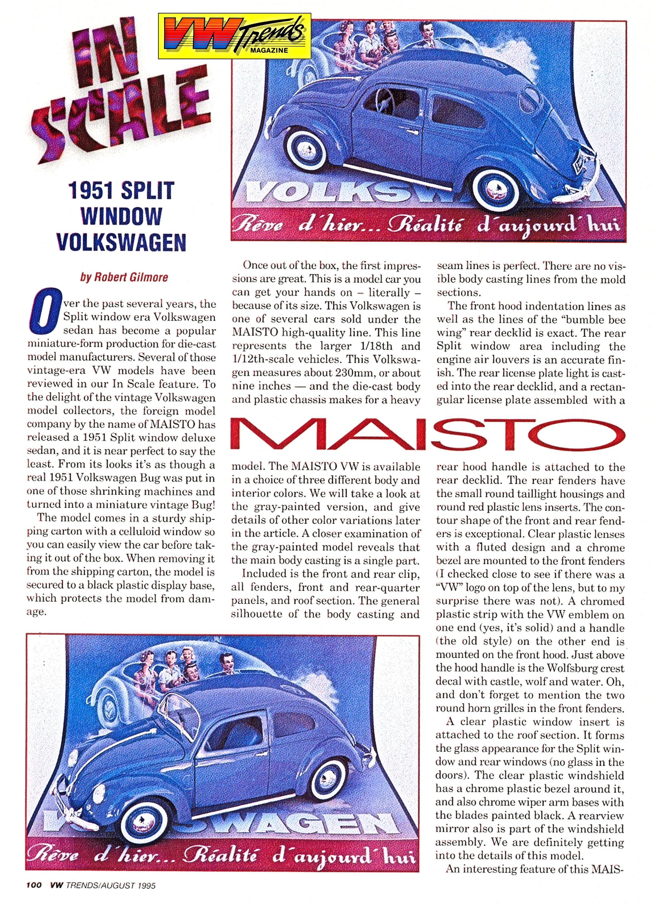 To the delight of the vintage Volkswagen model collectors, the foreign company by the name of MAISTO has released a 1951 Split Window deluxe sedan, and it is near perfect to say the least.