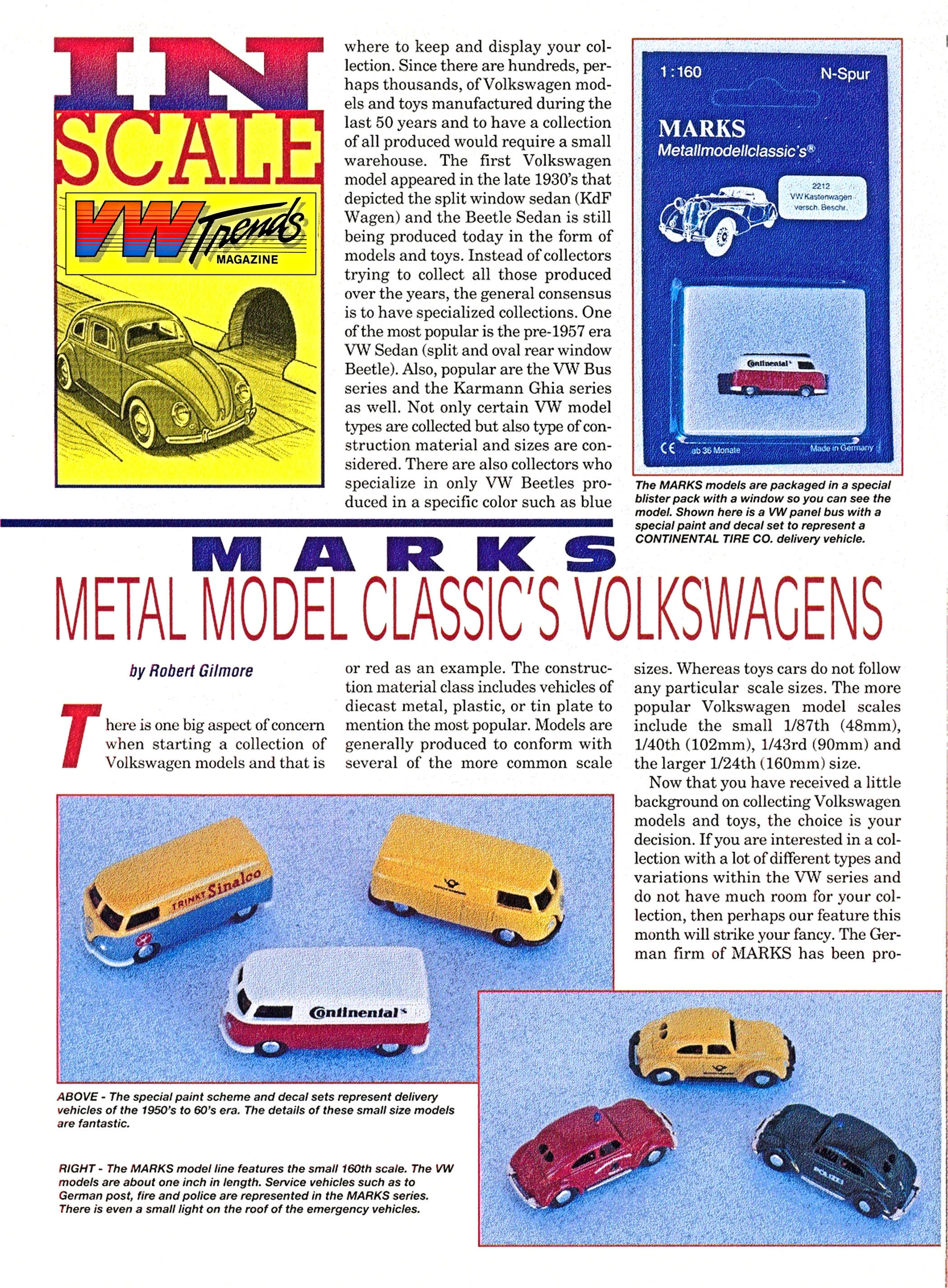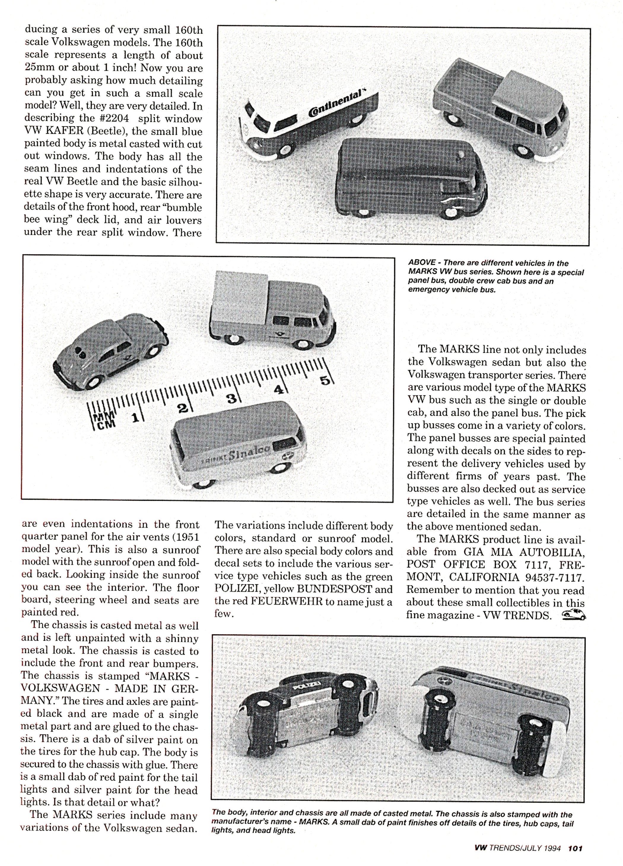 The German company of MARKS has been producing a series of very small 160th scale Volkswagen models. The 160th scale represents a length of 25mm or about 1 inch!