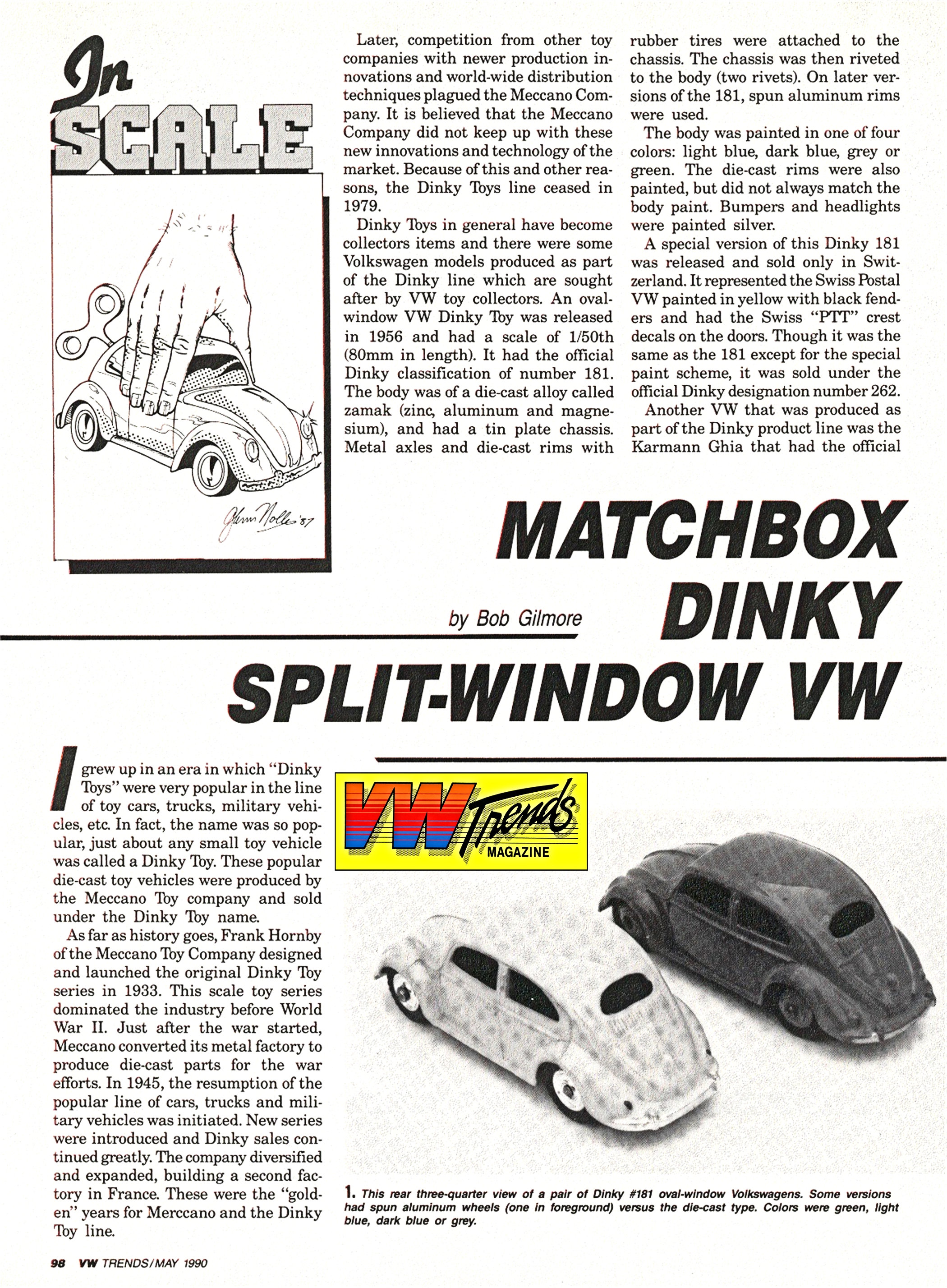 These popular diecast Volkswagen toy sedans were produced by the MECCANO TOY COMPANY and sold under the DINKY TOYS name.