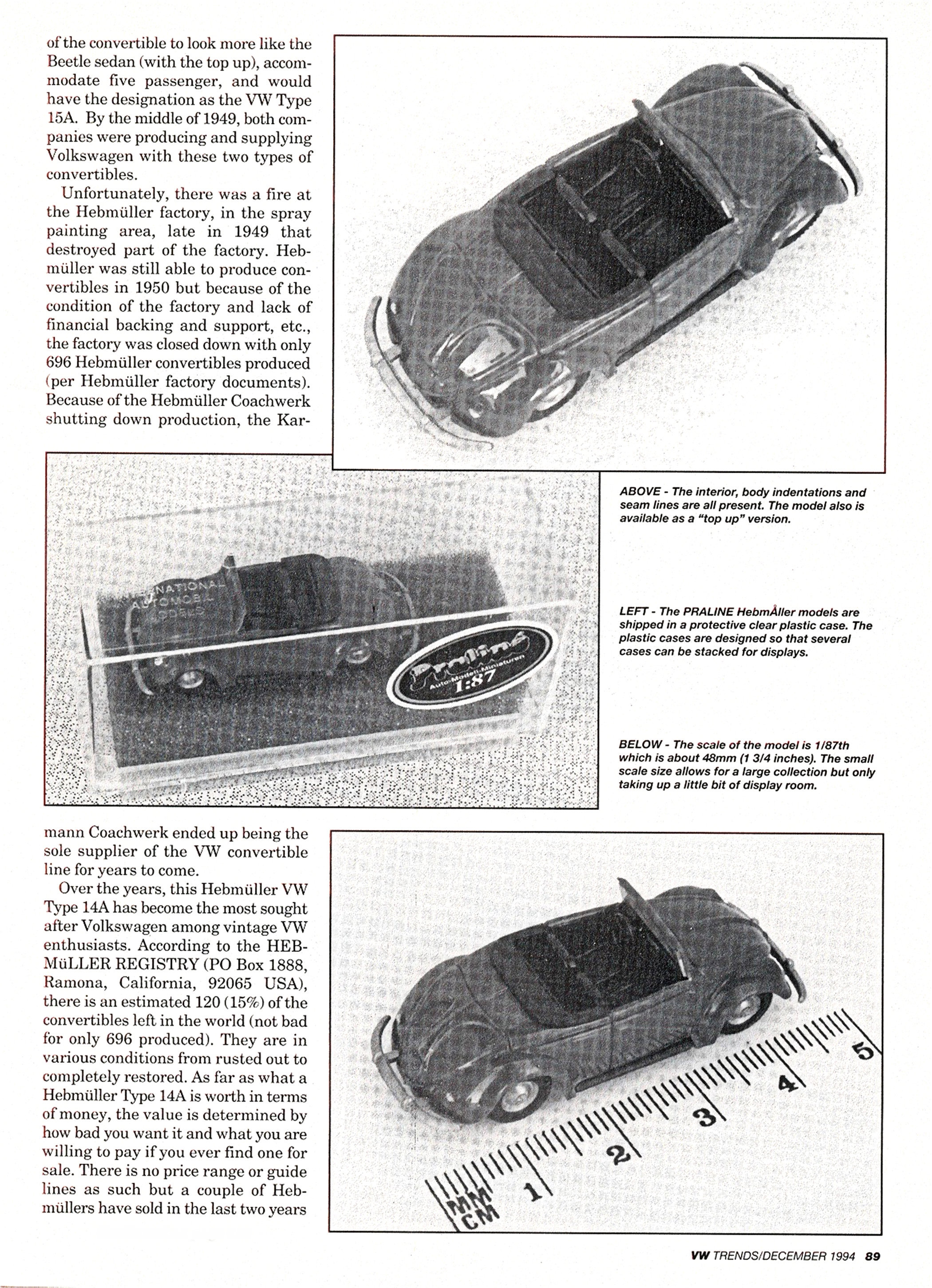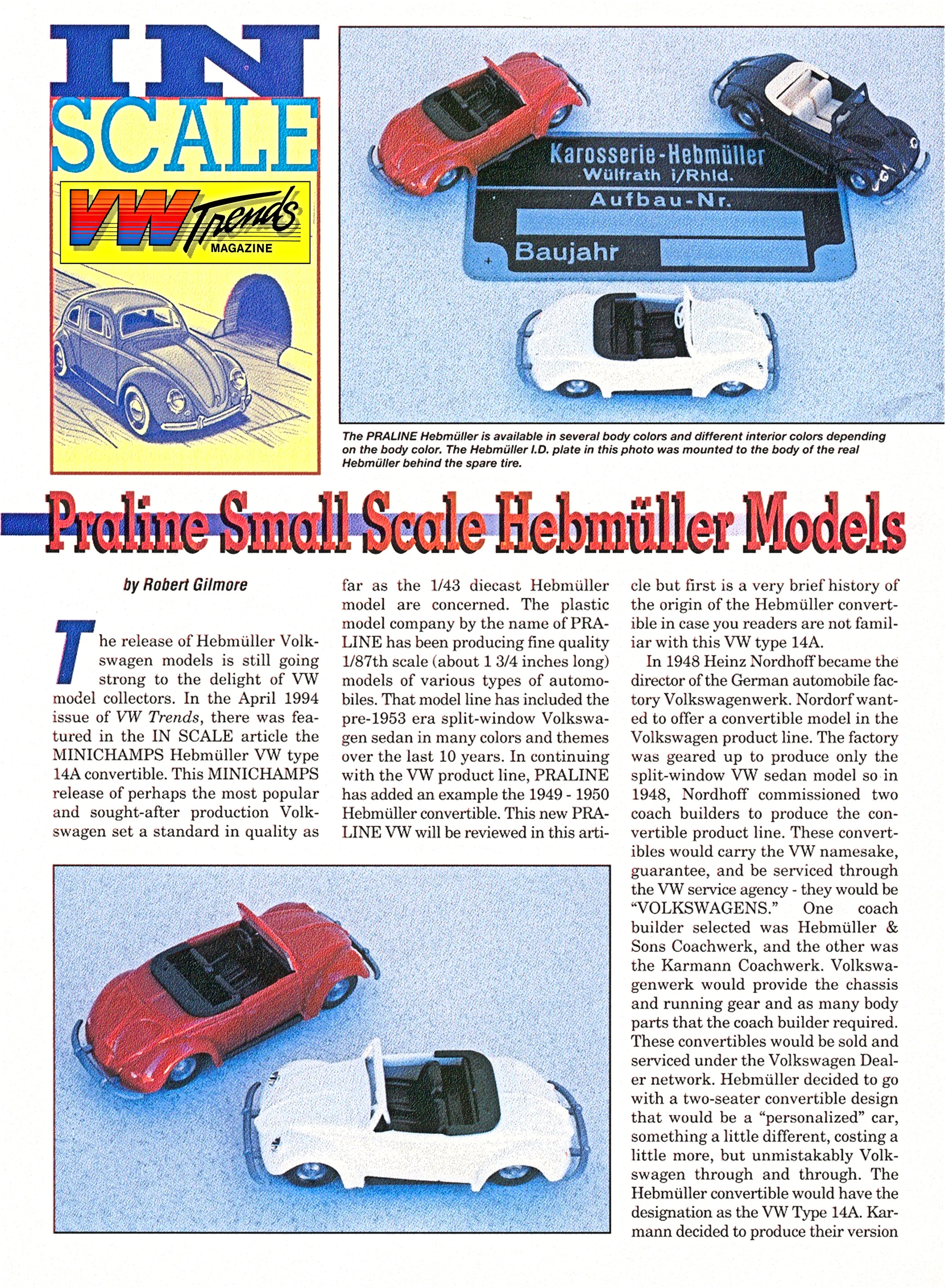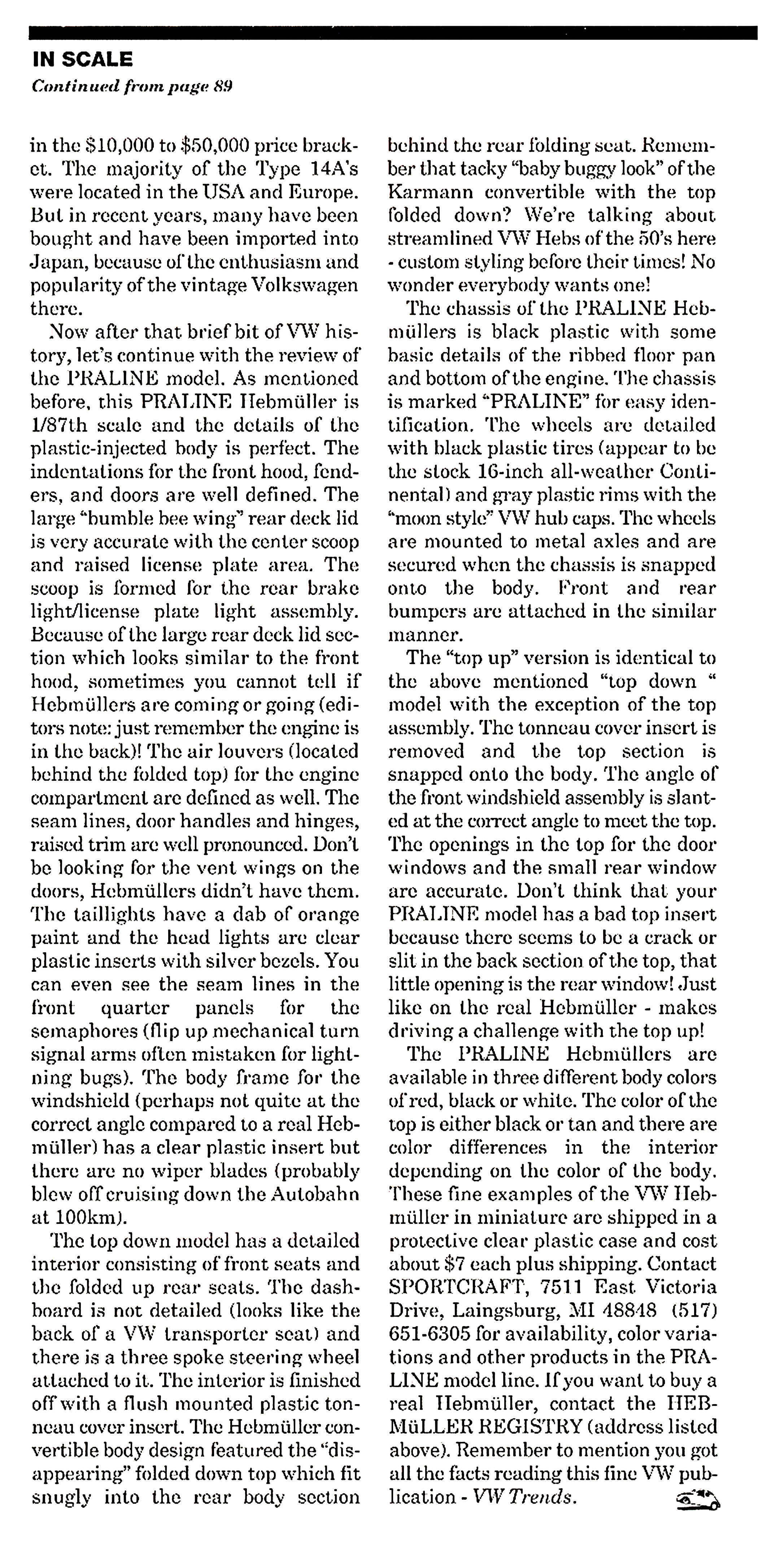 In continuing with the VW product line, PRALINE has added an example of the 1949-1950 Hebmüller VW convertible. This new PARLINE VW will be reviewed in this article.