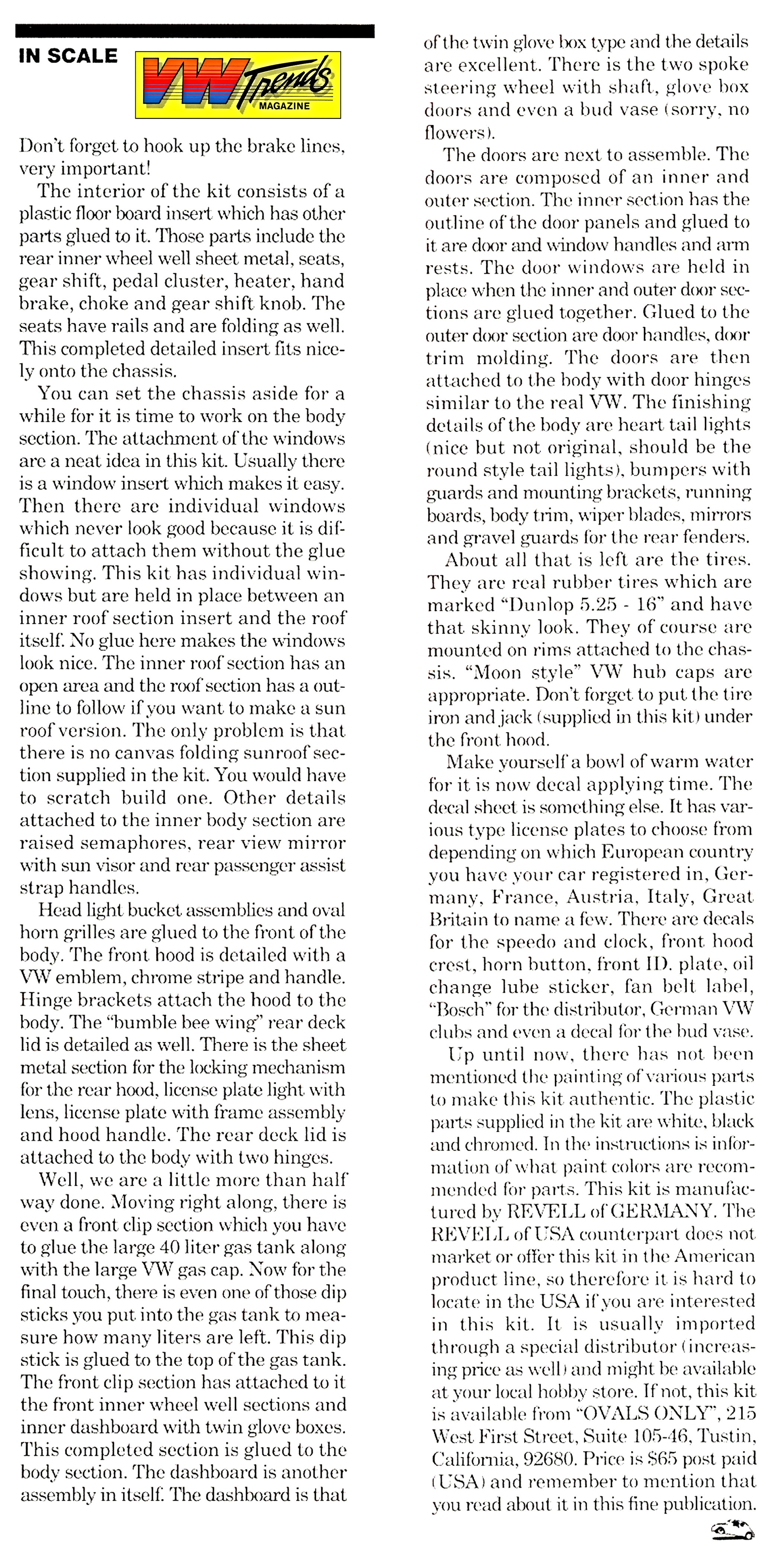 Volkswagen model kit builders, let me have your attention - please! The "BIG ONE" has finally arrived. Yes, put a new blade in your X-ACTO knife and get those paint brushes and finishing paper ready, clear off three square yards of work area and say goodbye to your family members and friends for about 100 hours!